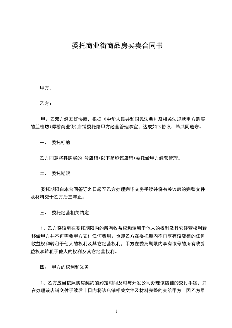 乙方同意将其购买的 号店铺(以下简称该店铺)委托给甲方经营管理。