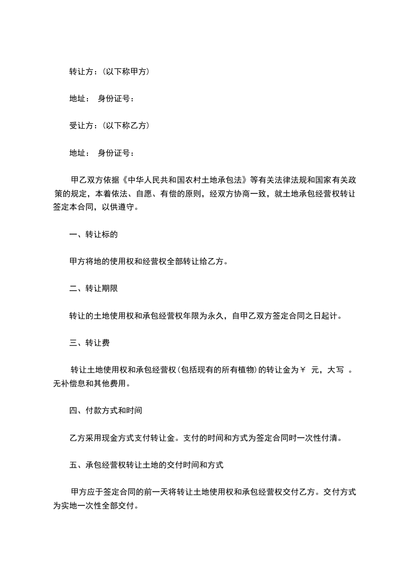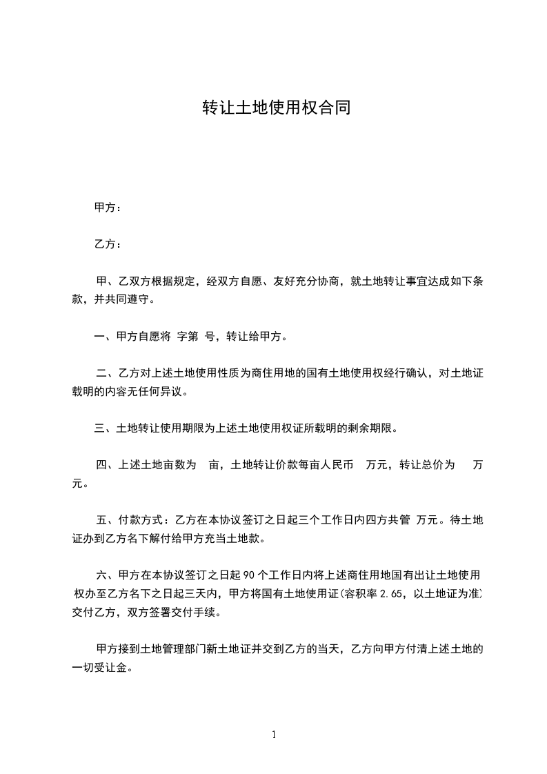 一、甲方自愿将座落在县城邮电局对面桥北市场旁,西靠__________国道,门面(二层,计__________平方)房屋土地转让给乙方。