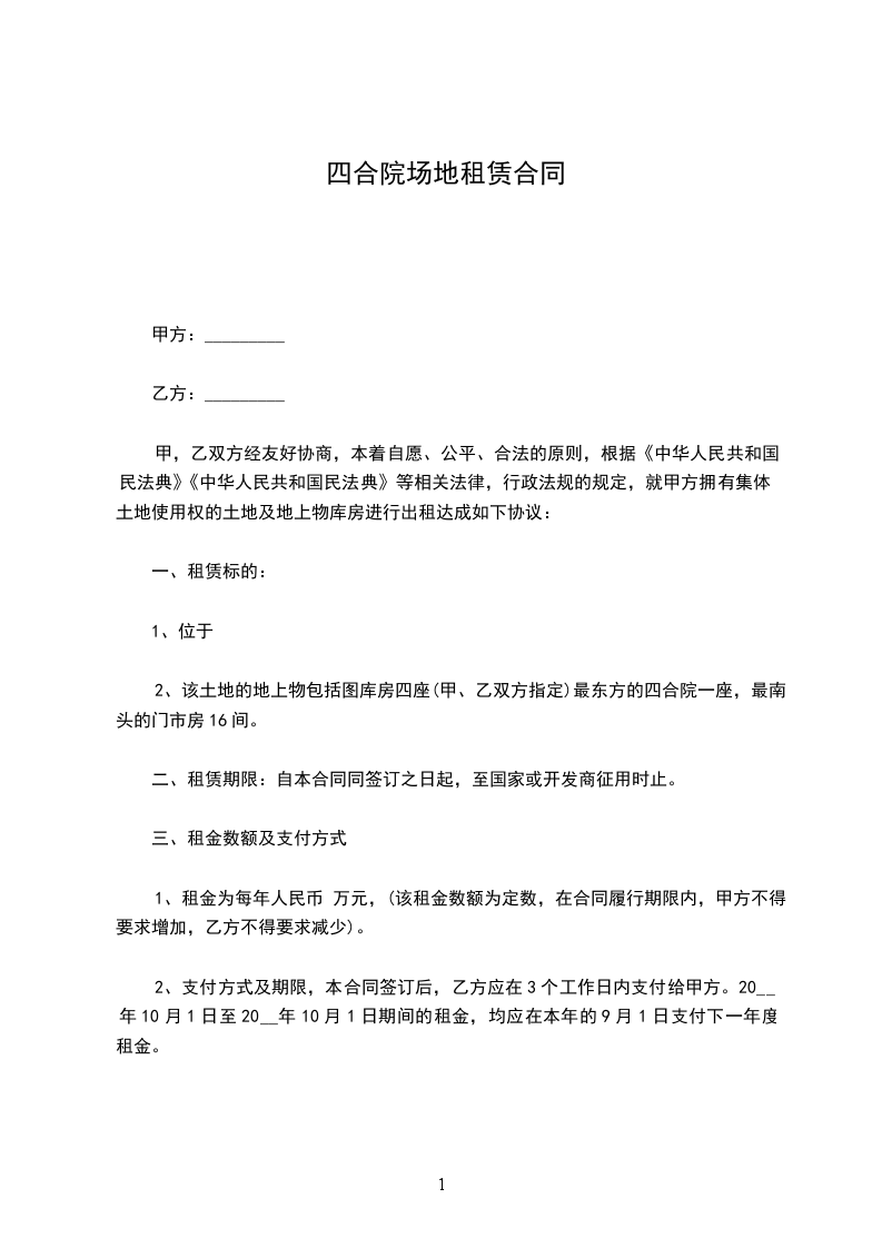 1、租金为每年人民币 万元,(该租金数额为定数,在合同履行期限内,甲方不得要求增加,乙方不得要求减少)。