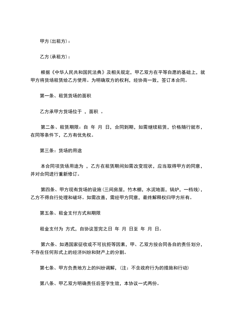 (5)甲方负责垫平最西边库房宽度不小于10米的场地,通道,便于乙方来往车辆通过。