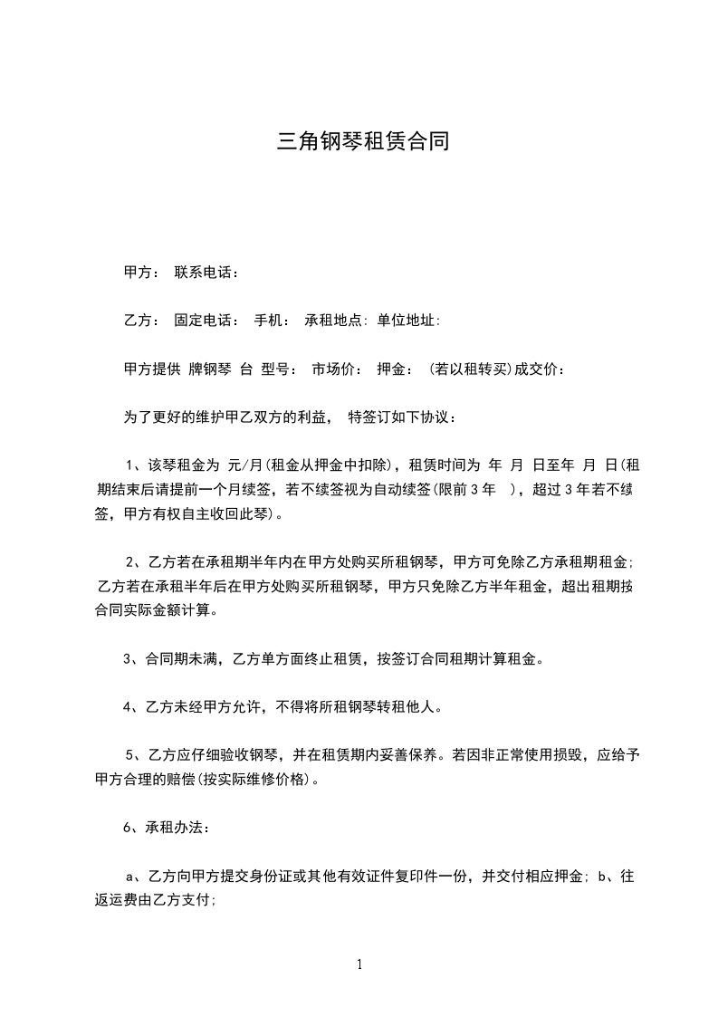 2.承租人租用时间最短时间为半年,如不满半年按半年收取租金。超过半年以上租金按月收取,租金可从钢琴押金中扣除。承租人需负责钢琴来回搬运的费用;