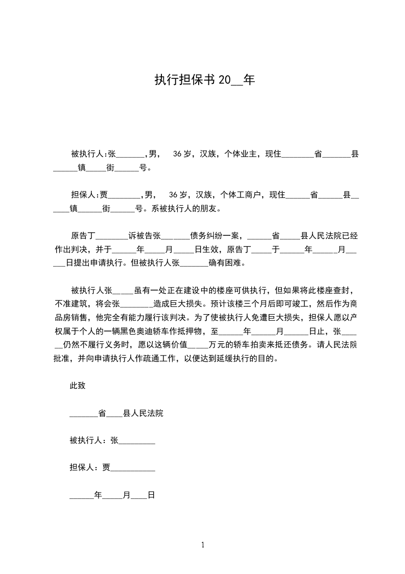 甲方:____________ 担保人:____________