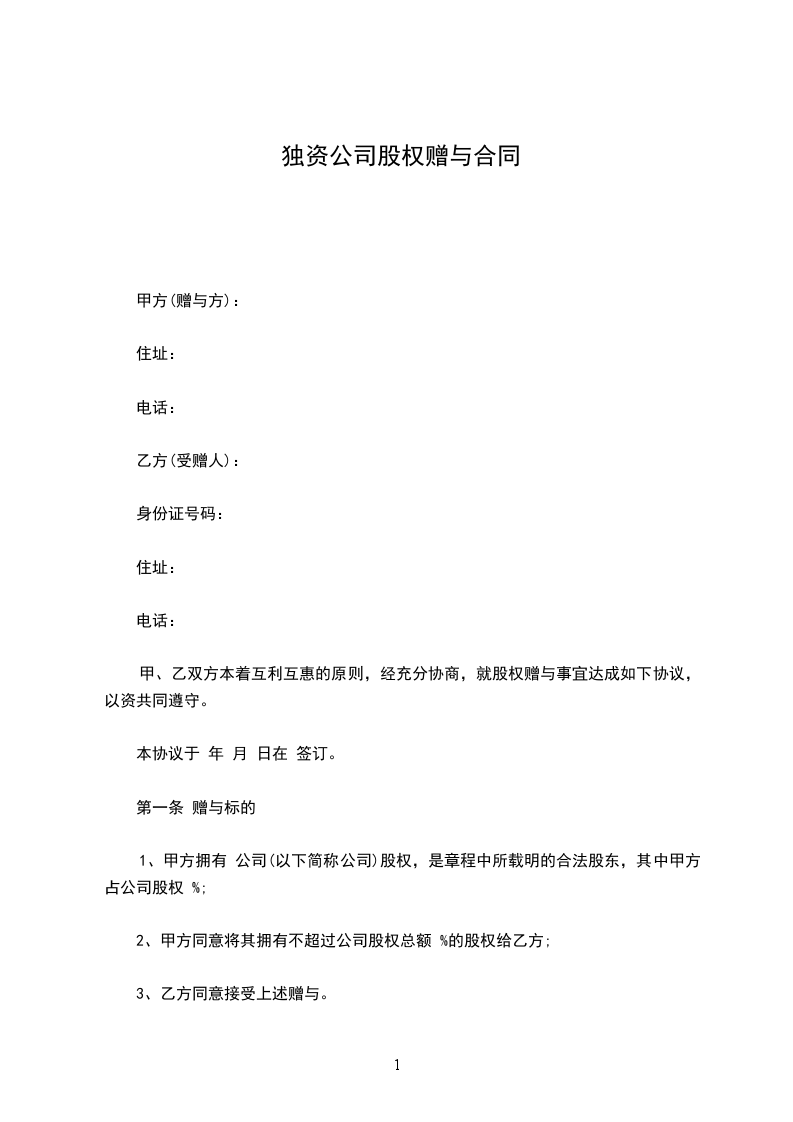 1、甲方拥有 公司(以下简称公司)股权,是章程中所载明的合法股东,其中甲方占公司股权 %;