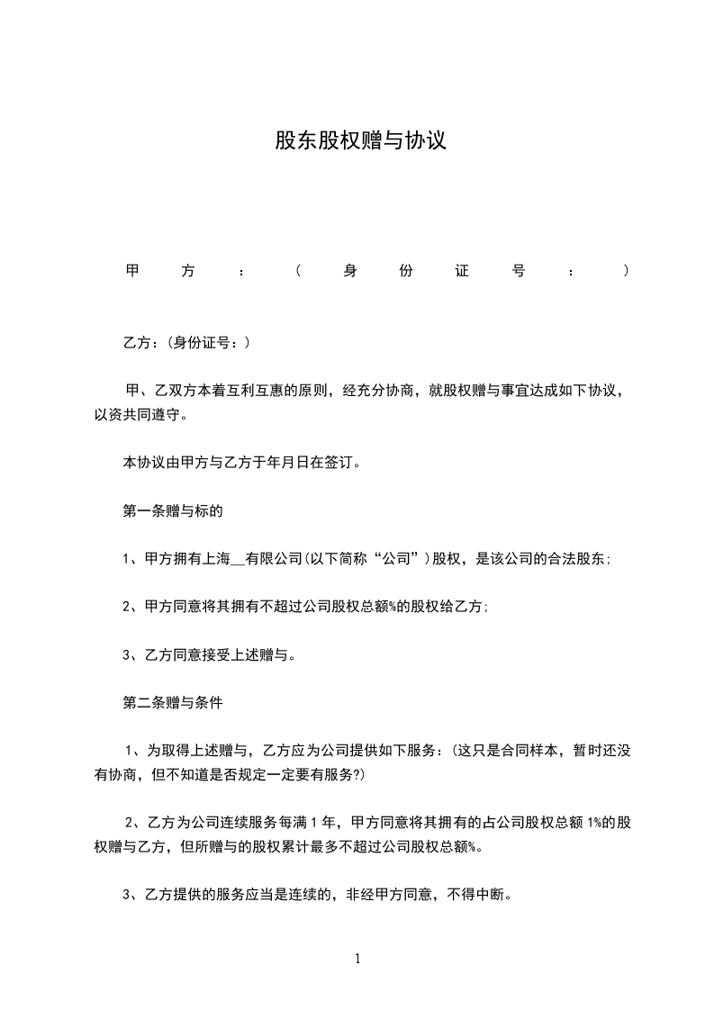 甲、乙双方本着互利互惠的原则,经充分协商,就股权赠与事宜达成如下协议,以资共同遵守。