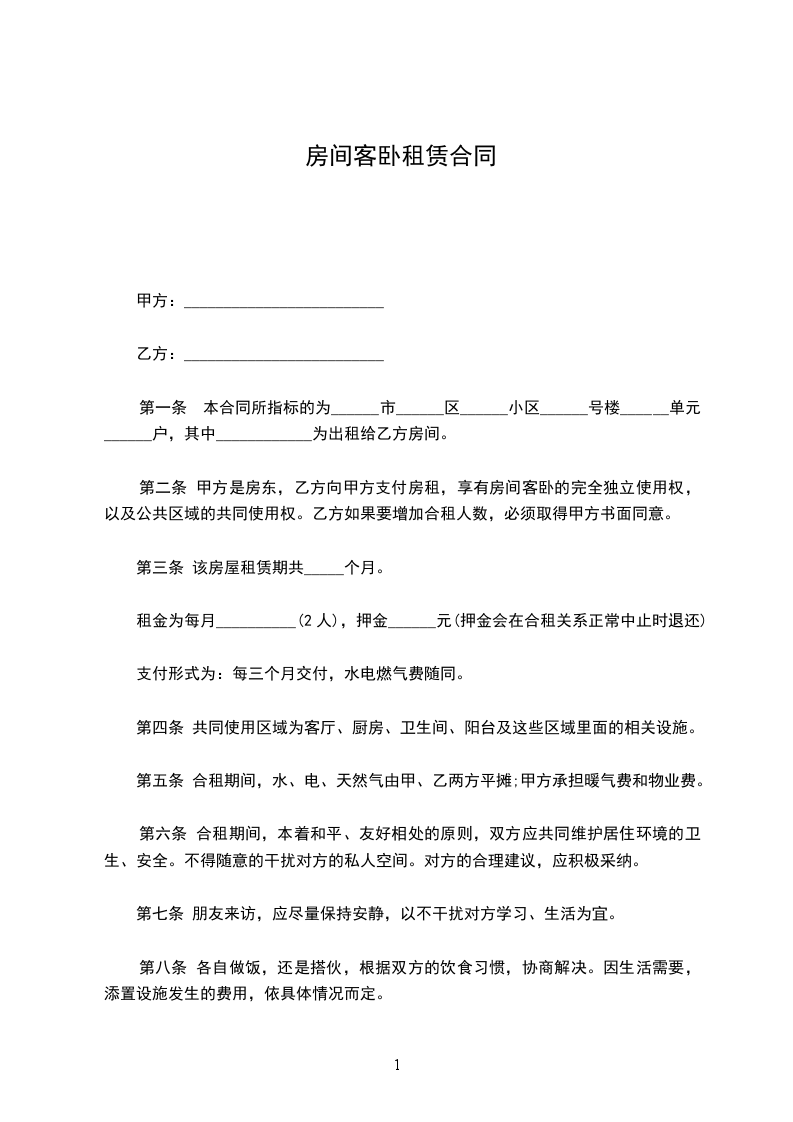 第一条 本合同所指标的为______市______区______小区______号楼______单元______户,其中____________为出租给乙方房间。