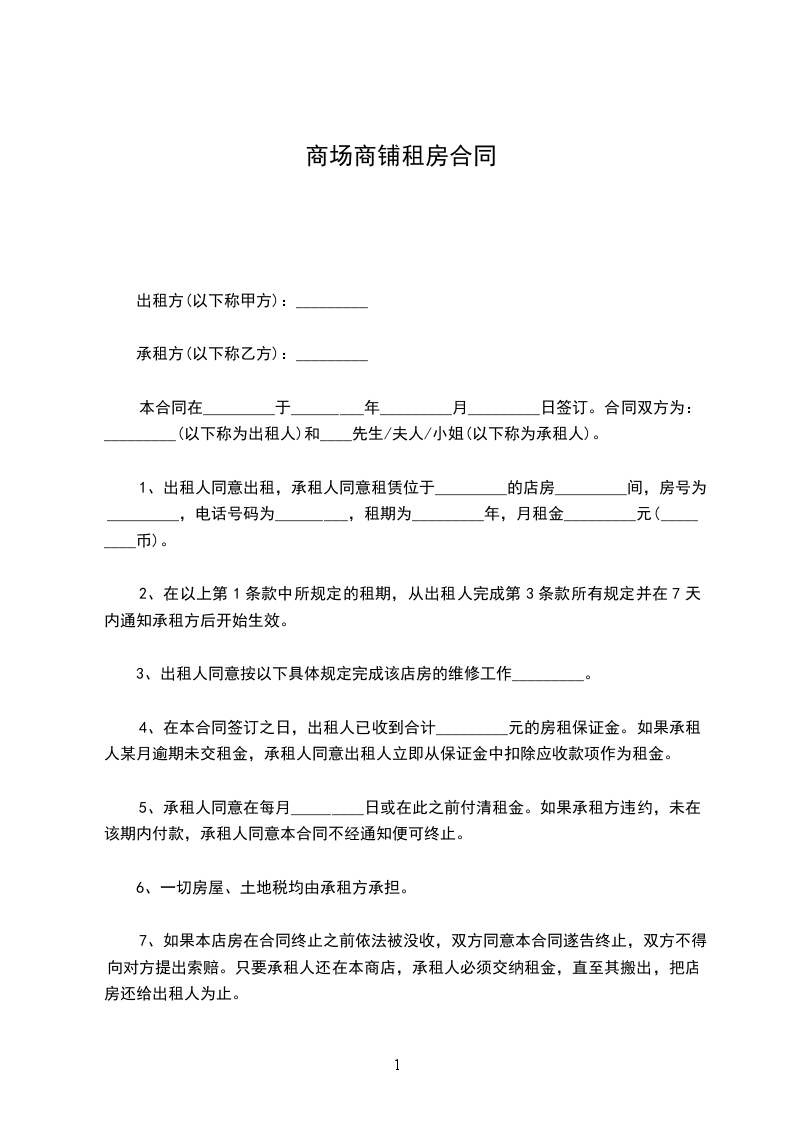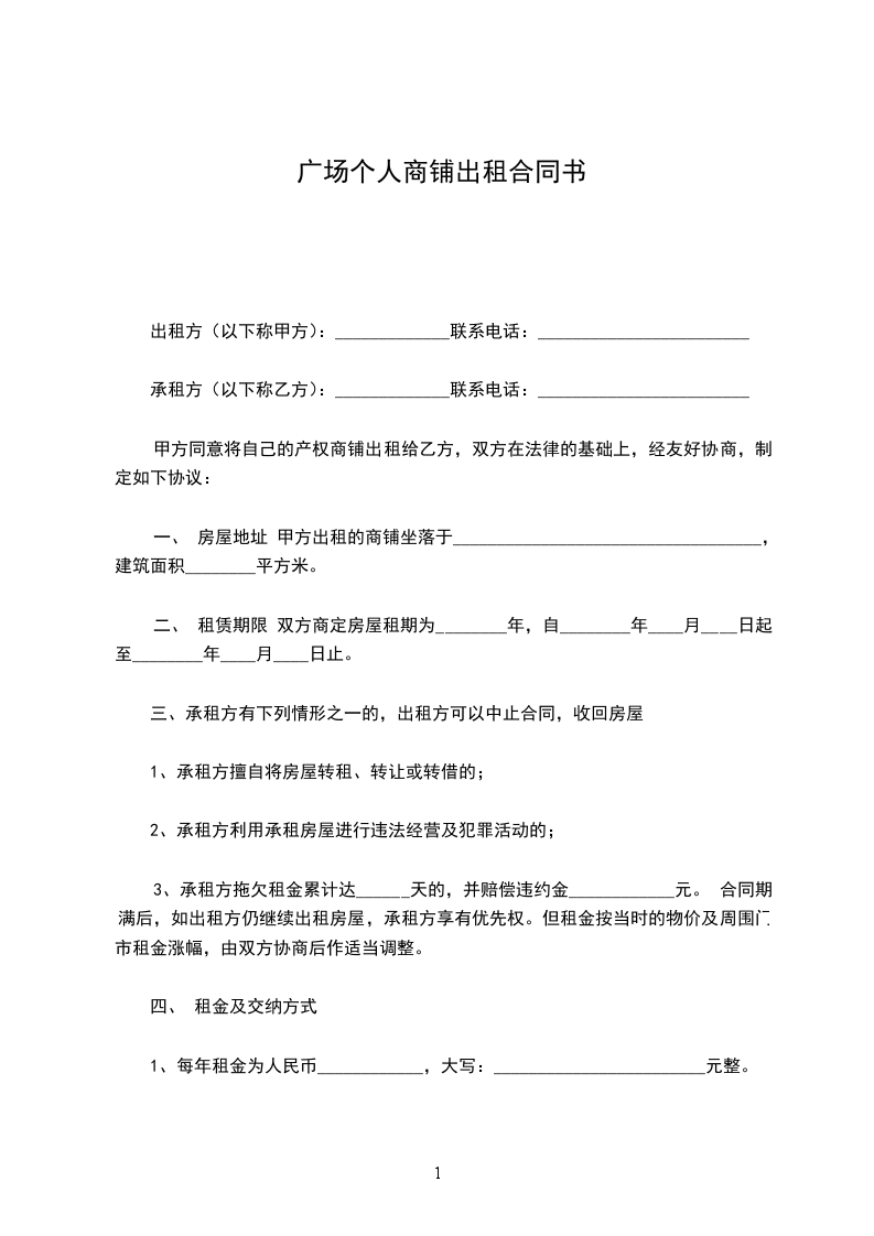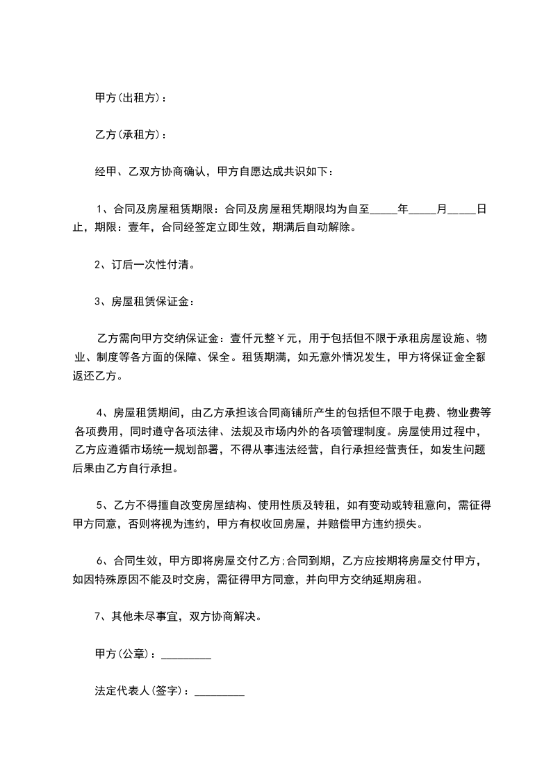 1.乙方经过实地考察后,特诚意预定甲方经营管理的坐落于_________的商铺,面积预计为_________平方米,现一次性缴纳租赁意向金_________元。