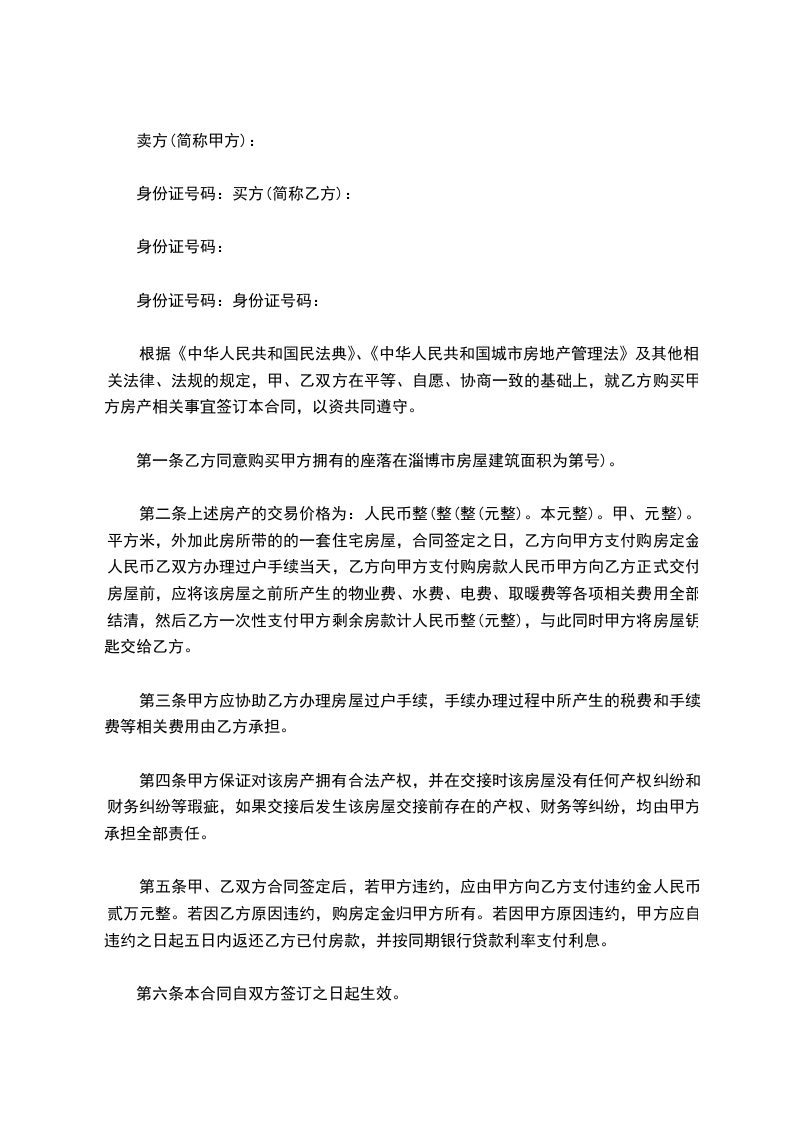 买方: ________(以下简称乙方) 身份证号:______