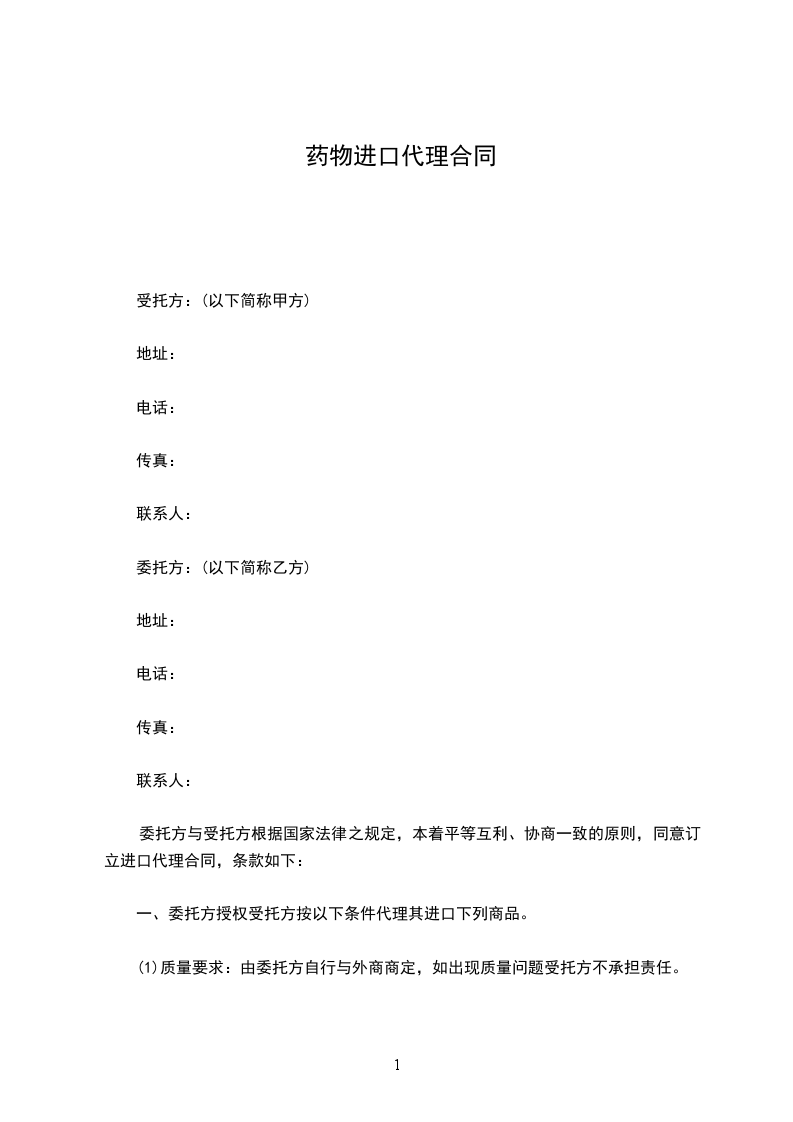 委托方与受托方根据国家法律之规定,本着平等互利、协商一致的原则,同意订立进口代理合同,条款如下: