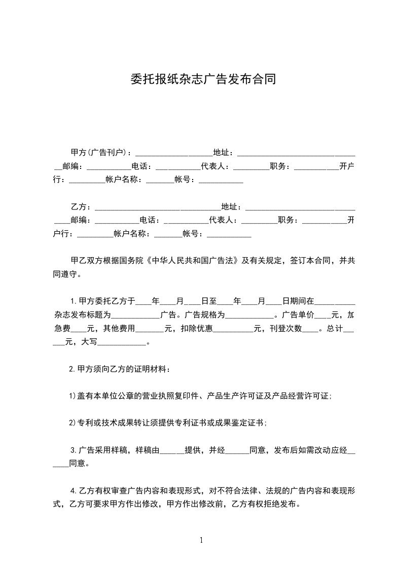 四、广告发布时间: 年 月 日 本报为一周一期即从广告发布之日起两日内。