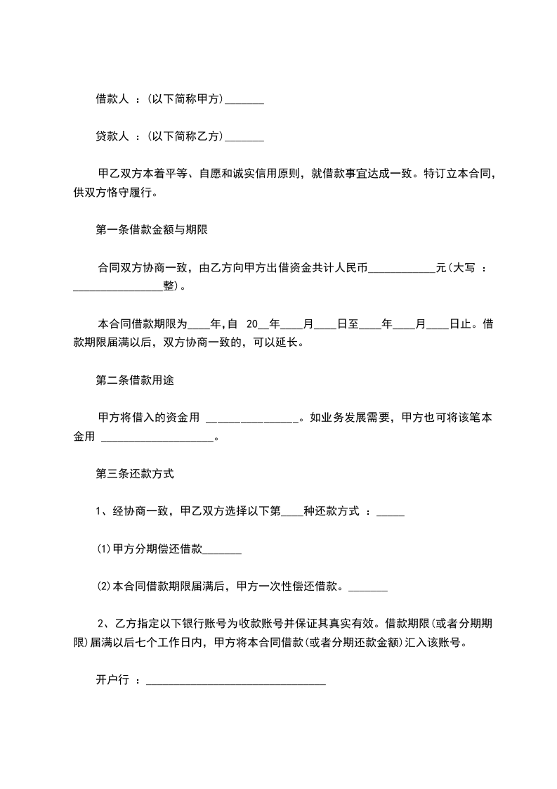 1.甲方向乙方借款人民币(大写)___万元,规定用于