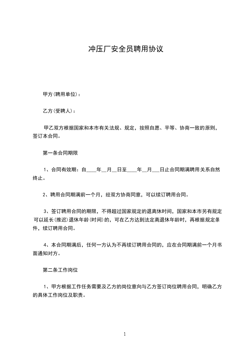 1、甲方根据工作任务需要及乙方的岗位意向与乙方签订岗位聘用合同,明确乙方的具体工作岗位及职责。