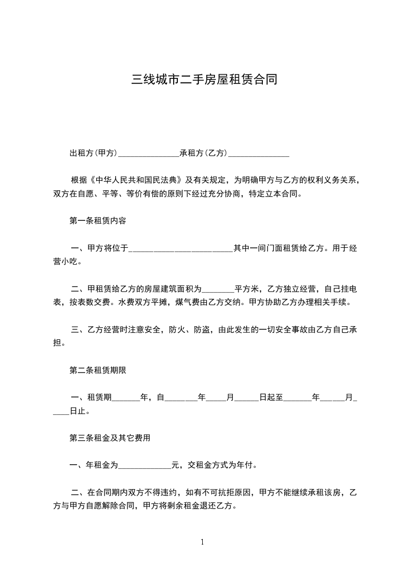 第三条:该房屋租赁期限为_____ 年:从______年_____月_____日至______年_____月_____日。