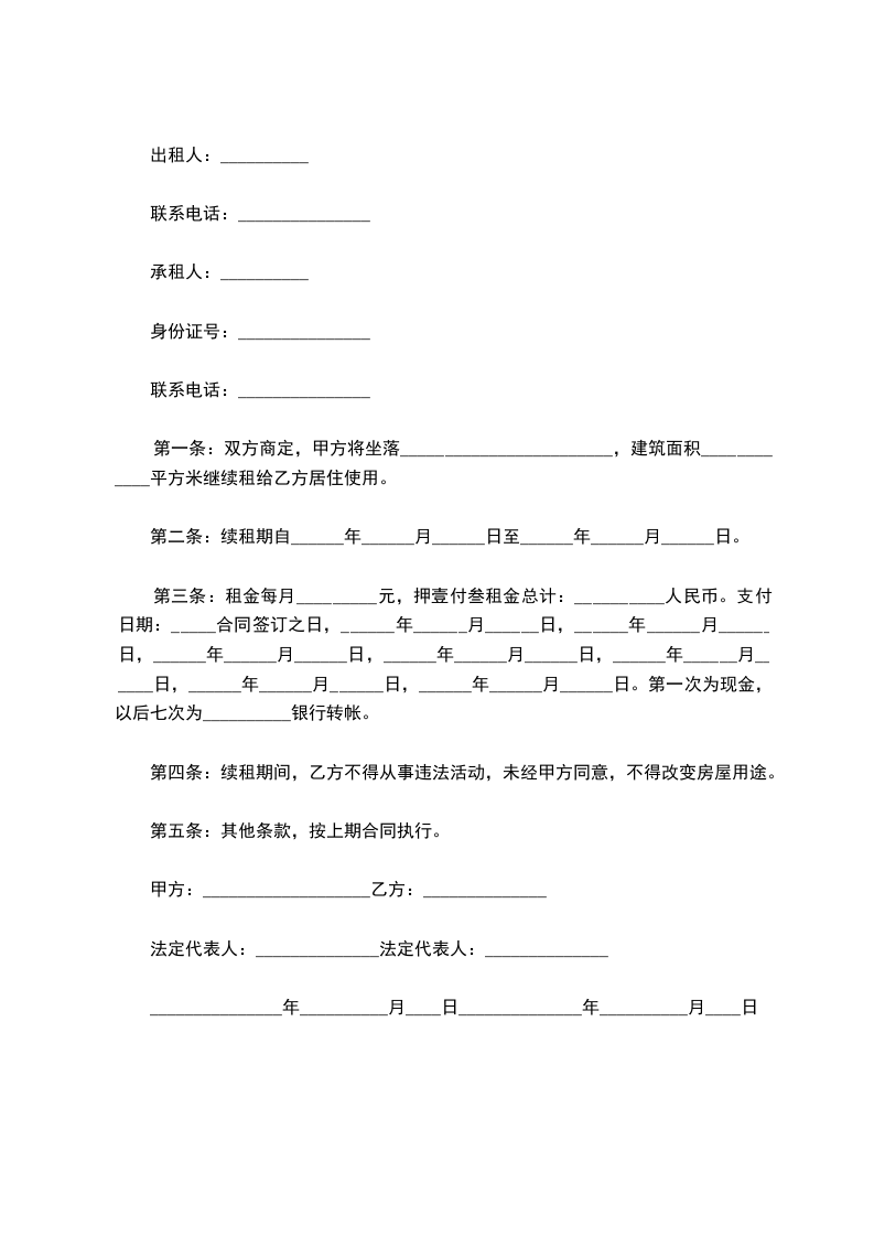 第七条:合同期满后,乙方如需要继续承租,应提前向甲方提出书面申请,在等同条件下,乙方享有优先承租权。