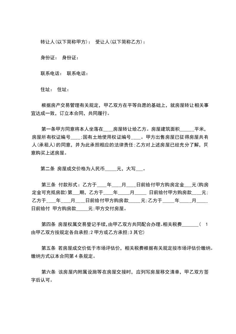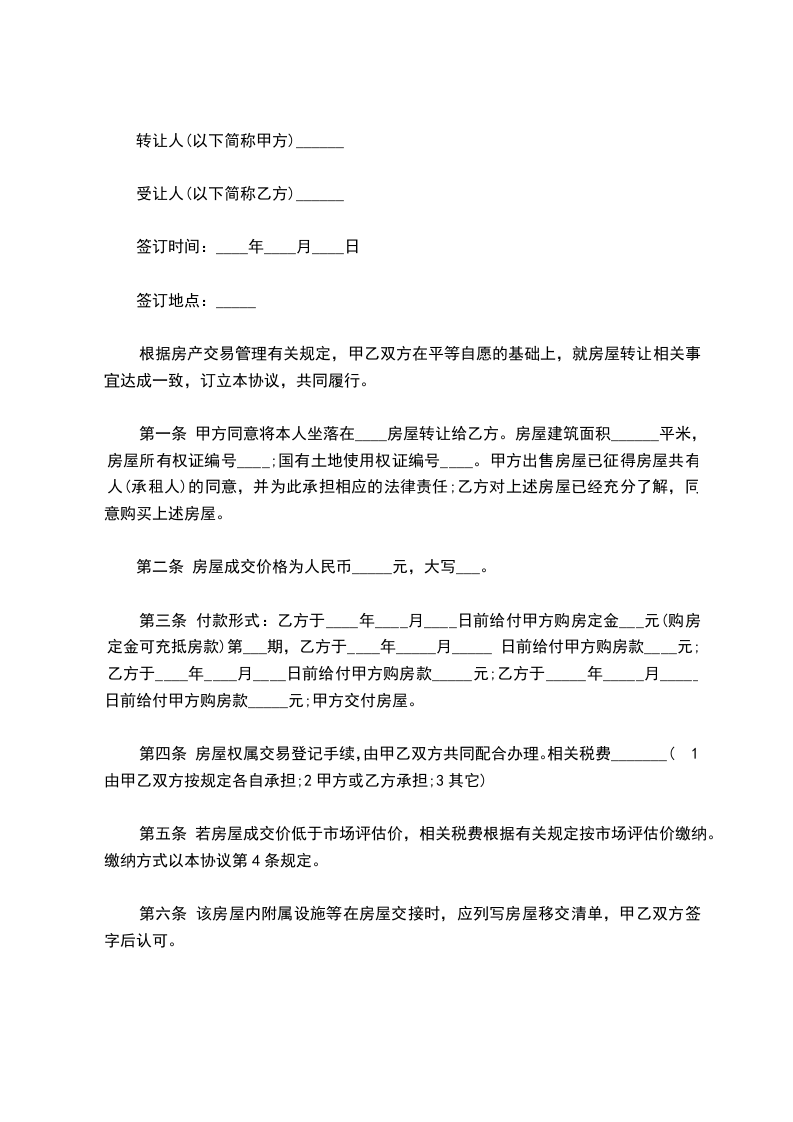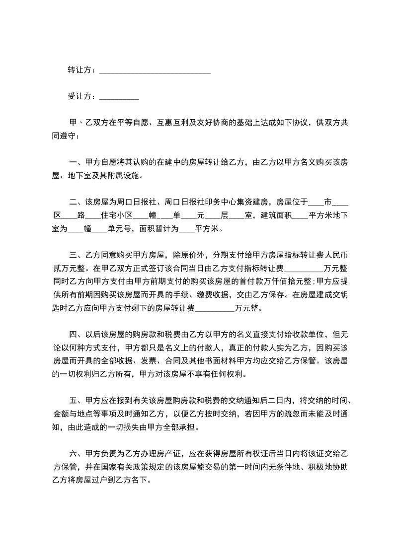 转让人(以下简称甲方): 受让人(以下简称乙方):