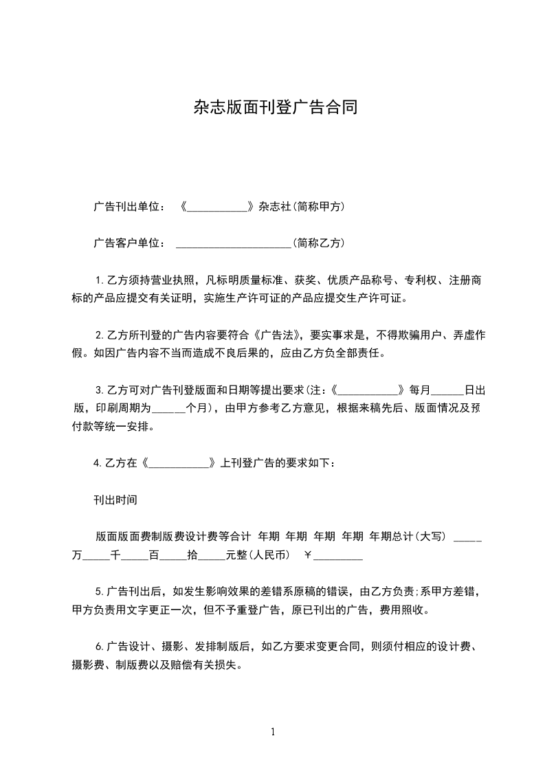 1.甲方按乙方要求将信息刊登在《_________》特刊版面上,并对乙方提供的信息与刊登内容的一致性负责。刊登内容以乙方确认签字稿为准。