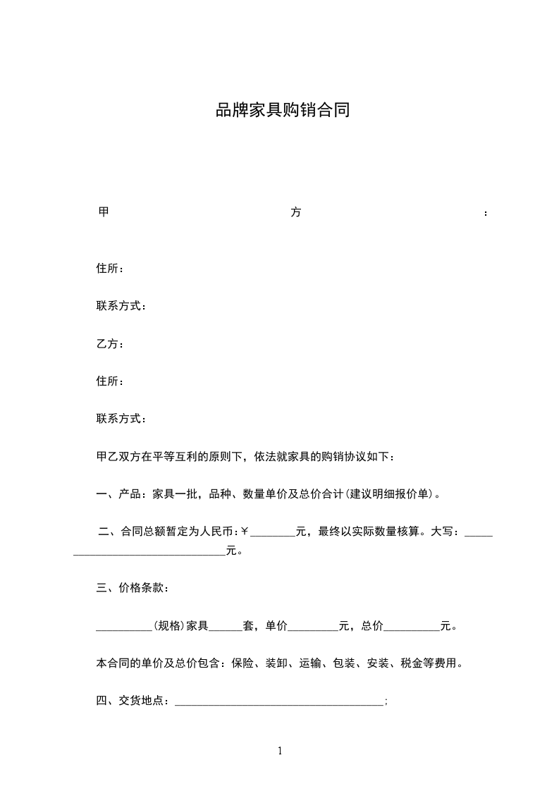 甲乙双方在平等互利的原则下,依法就家具的购销协议如下: