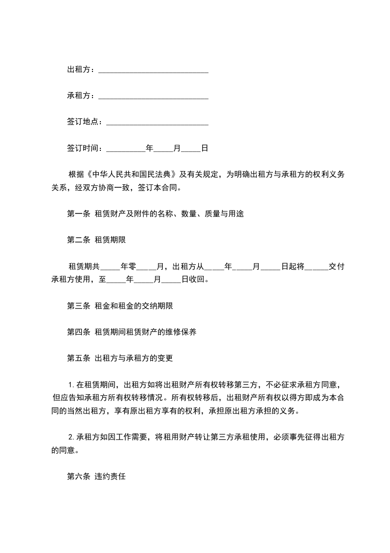 根据《中华人民共和国民法典》及有关规定,为明确出租方与承租方的权利义务关系,经双方协商一致,签订本合同。