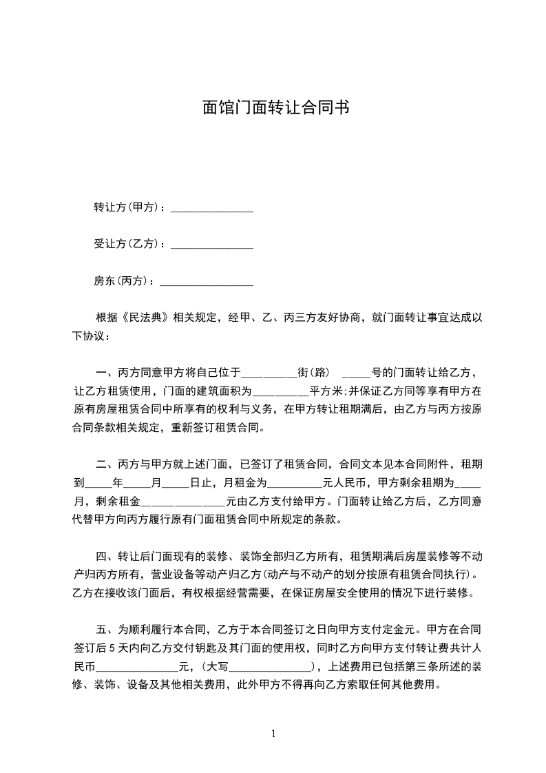 根据《民法典》相关规定,经甲、乙、丙三方友好协商,就门面转让事宜达成以下协议: