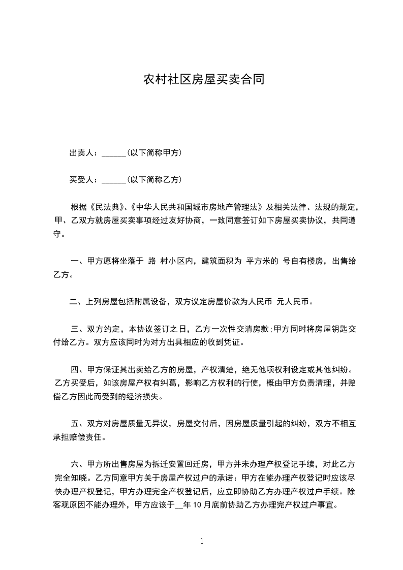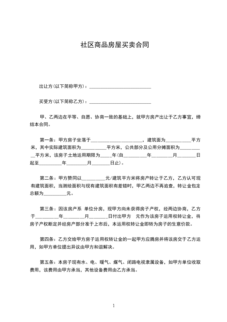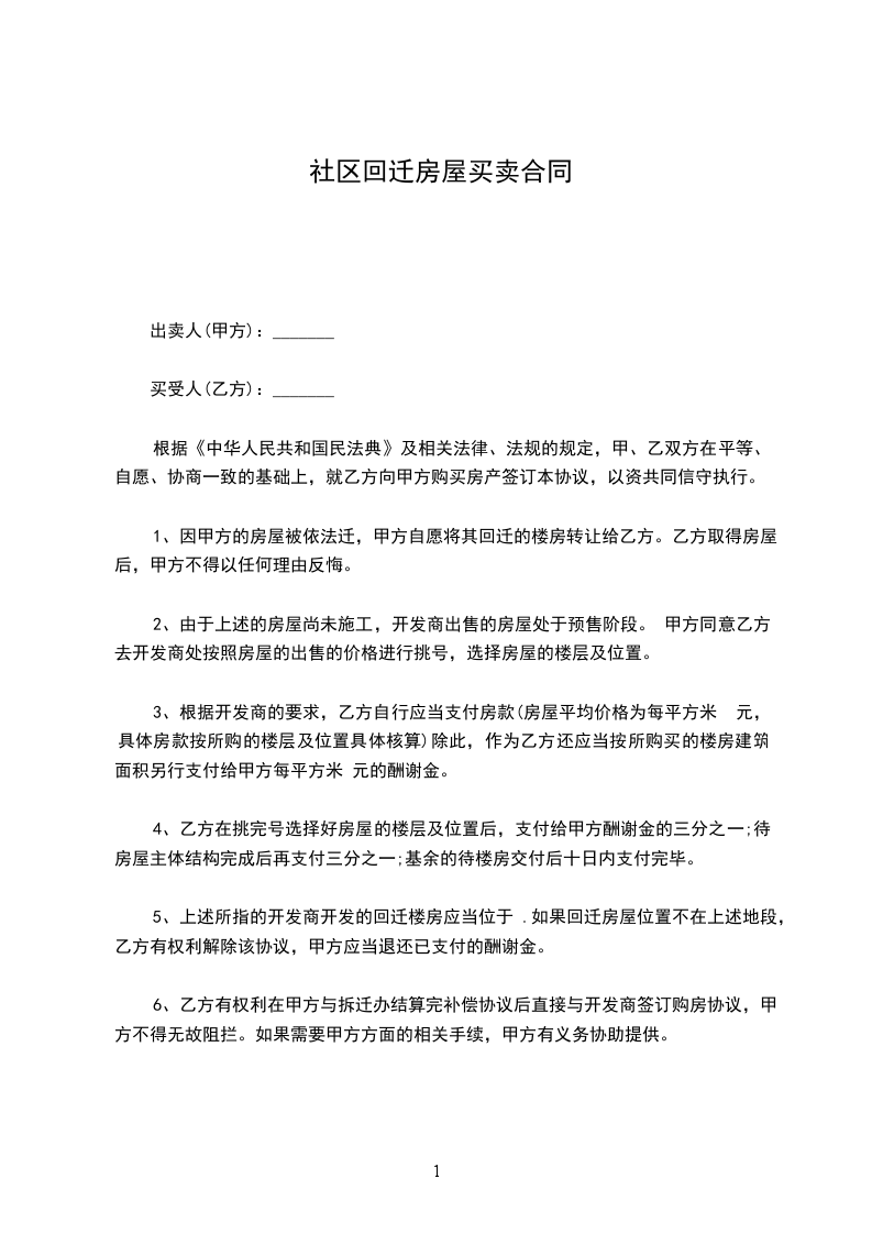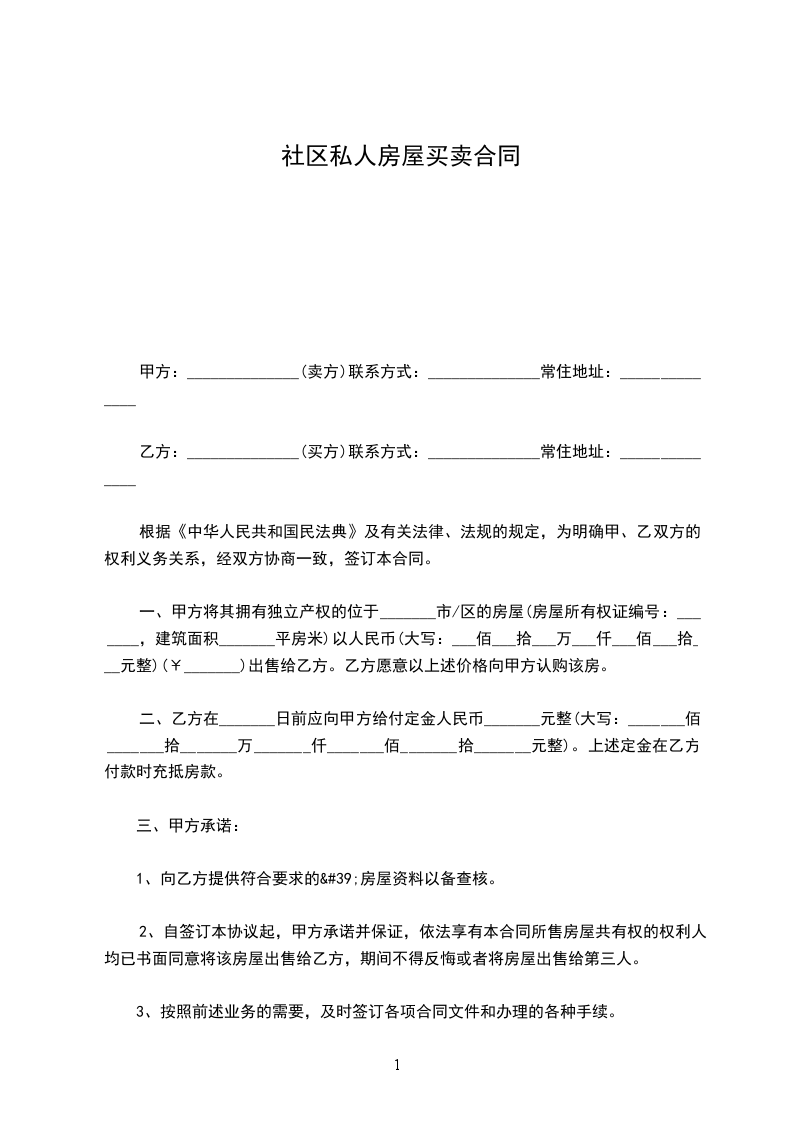 乙方:______________(买方)联系方式:______________常住地址:______________