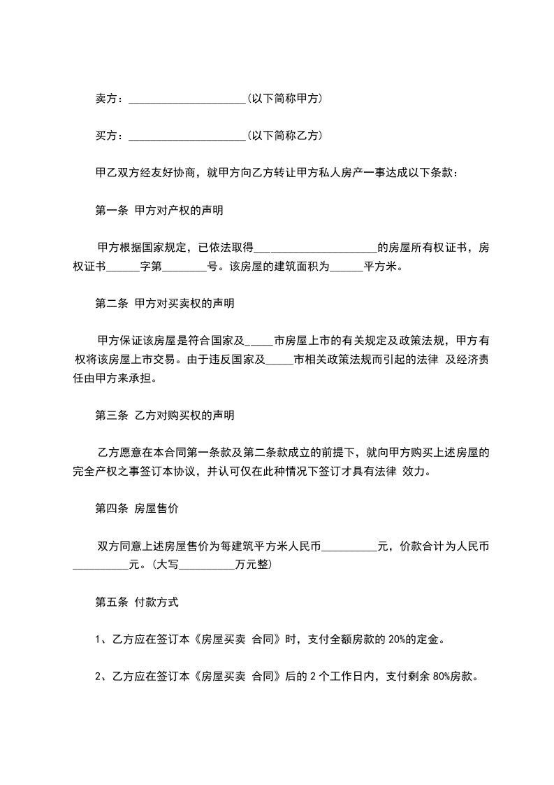 甲方:______________(卖方)联系方式:______________常住地址:______________