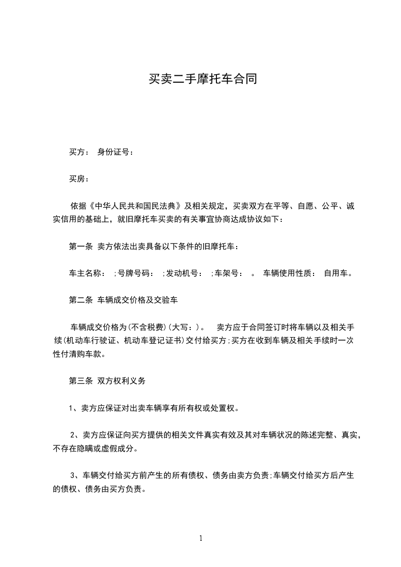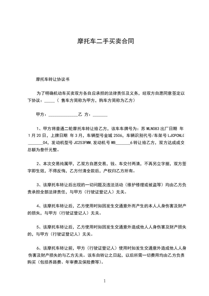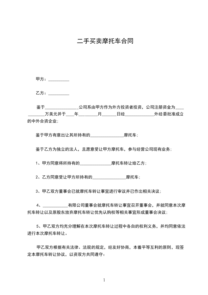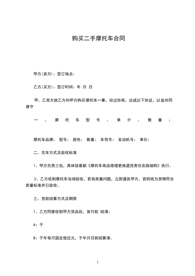 甲、乙双方就乙方向甲方购买摩托车一事,经过协商,达成以下协议,以兹共同遵守