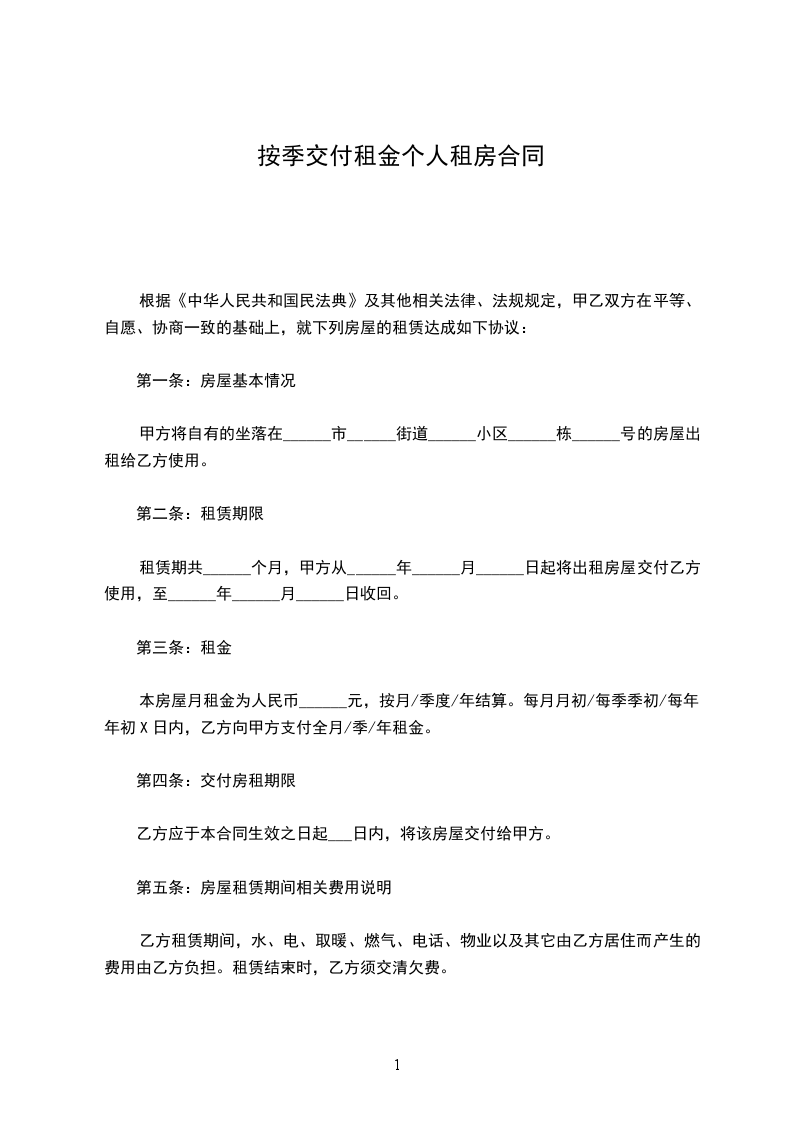 根据《中华人民共和国民法典》及其他相关法律、法规规定,甲乙双方在平等、自愿、协商一致的基础上,就下列房屋的租赁达成如下协议: