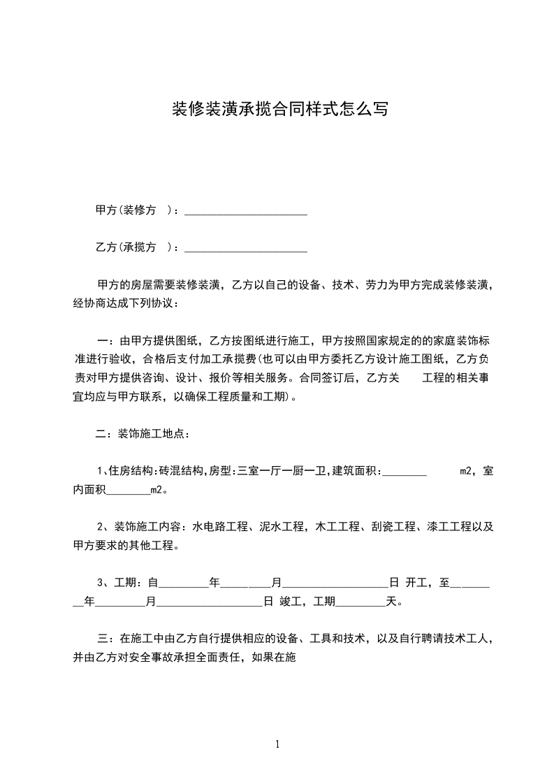 甲方的房屋需要装修装潢,乙方以自己的设备、技术、劳力为甲方完成装修装潢,经协商达成下列协议: