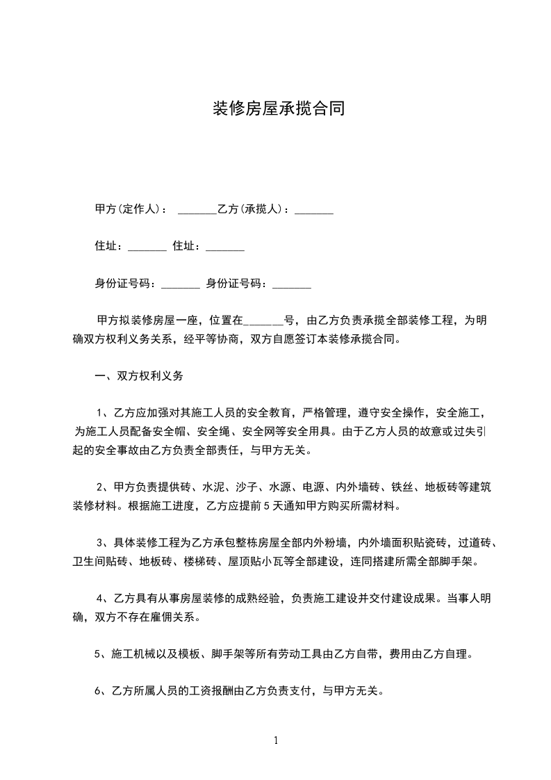 三:在施工中由乙方自行提供相应的设备、工具和技术,以及自行聘请技术工人,并由乙方对安全事故承担全面责任,如果在施