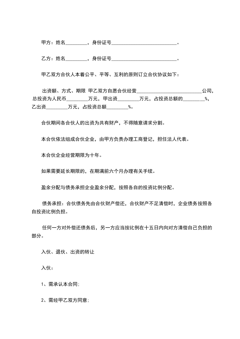 十一、本合同一式两份,甲乙合伙人各执一份。本合同自合伙人签字、盖章之日生效。