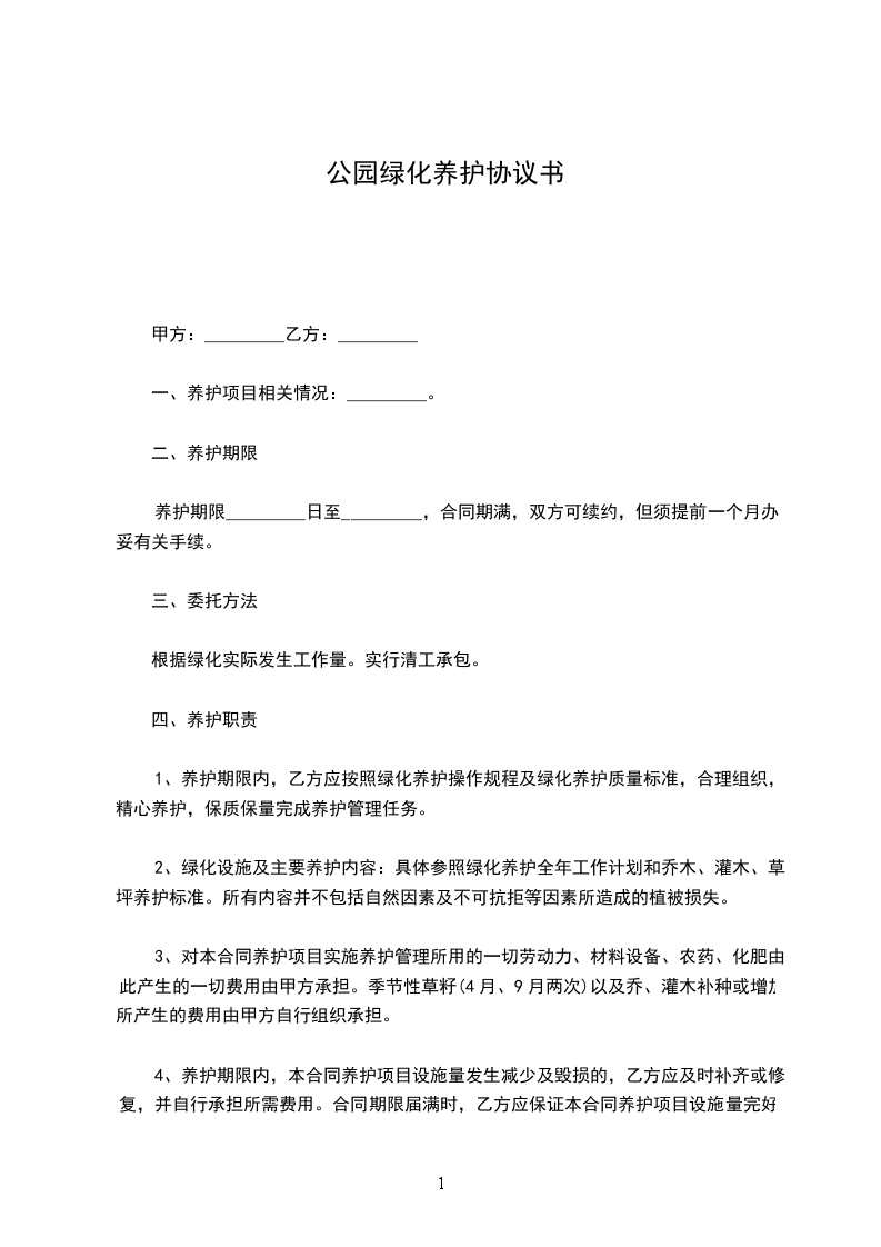 甲方将_________绿化委托乙方承包养护(简称养护),双方本着平等、互利、合作的原则协商达成如下合同条款。