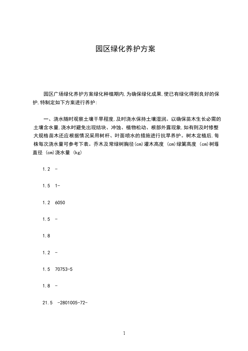 二、绿化养护工作要求绿化养护工作分为基本工作项目(简称基本工作)和定期工作项目(简称定期工作)两部分。基本工作是指一般地正常维护,即浇水、清理垃圾、防风防汛、补植和防人为损坏及零星病虫害防治、除杂草和修剪等;定期工作是指全面修剪整形、施肥、除杂草、松土和全面病虫害防治。绿化养护工作要求及检查验收标准详见附件一。