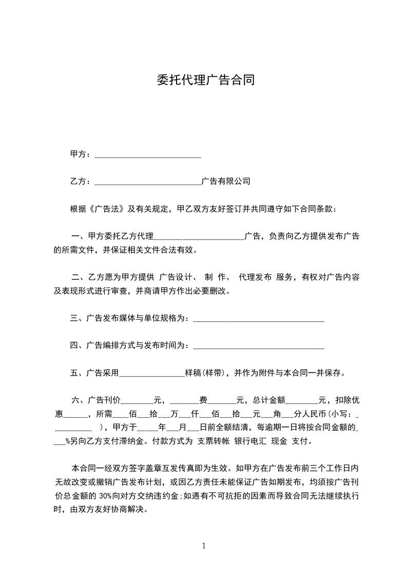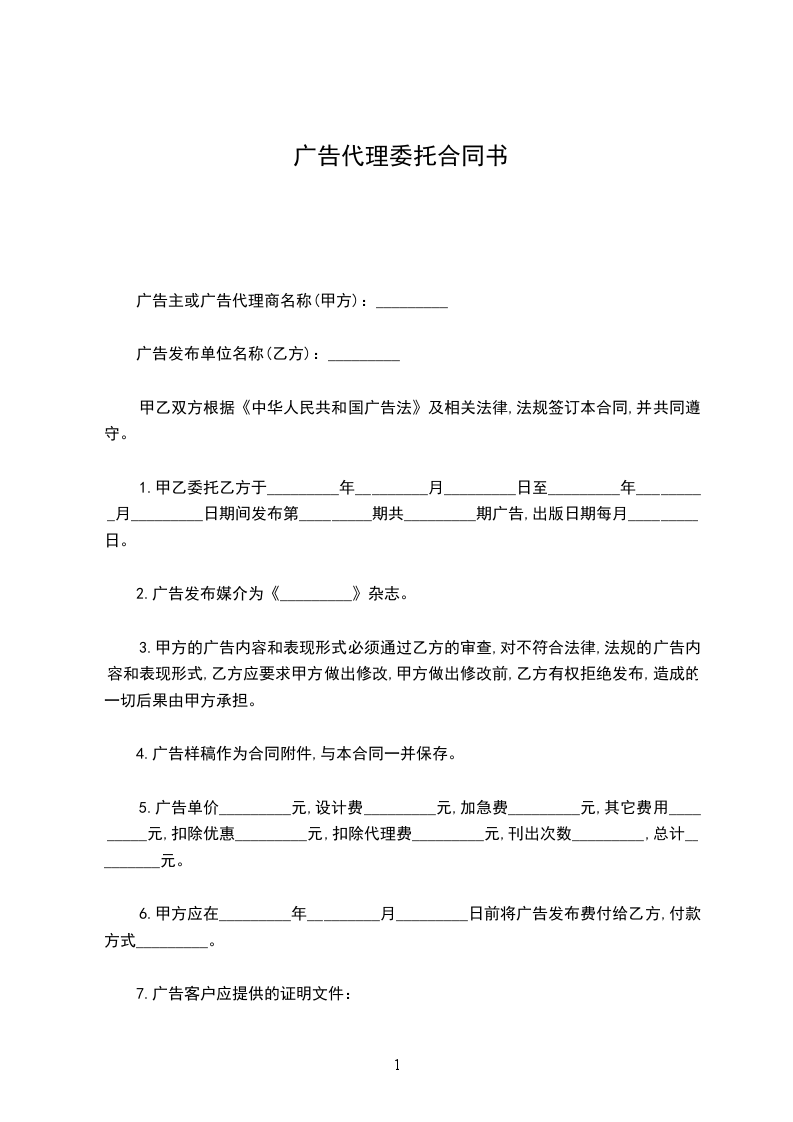 1.甲乙委托乙方于_________年_________月_________日至_________年_________月_________日期间发布第_________期共_________期广告,出版日期每月_________日。