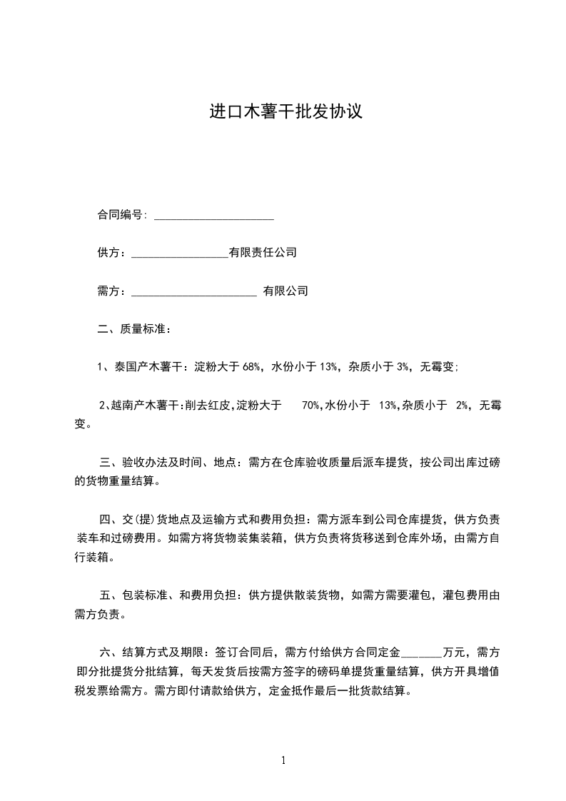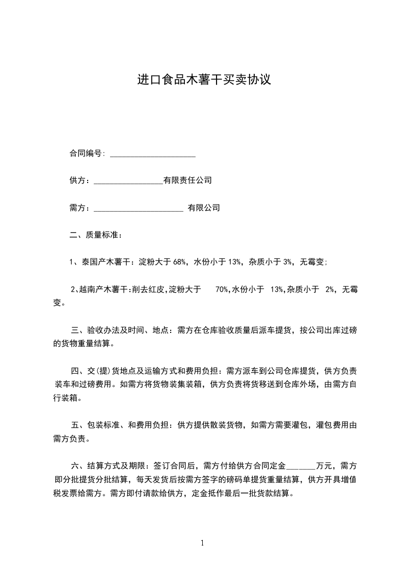 进口食品木薯干买卖协议