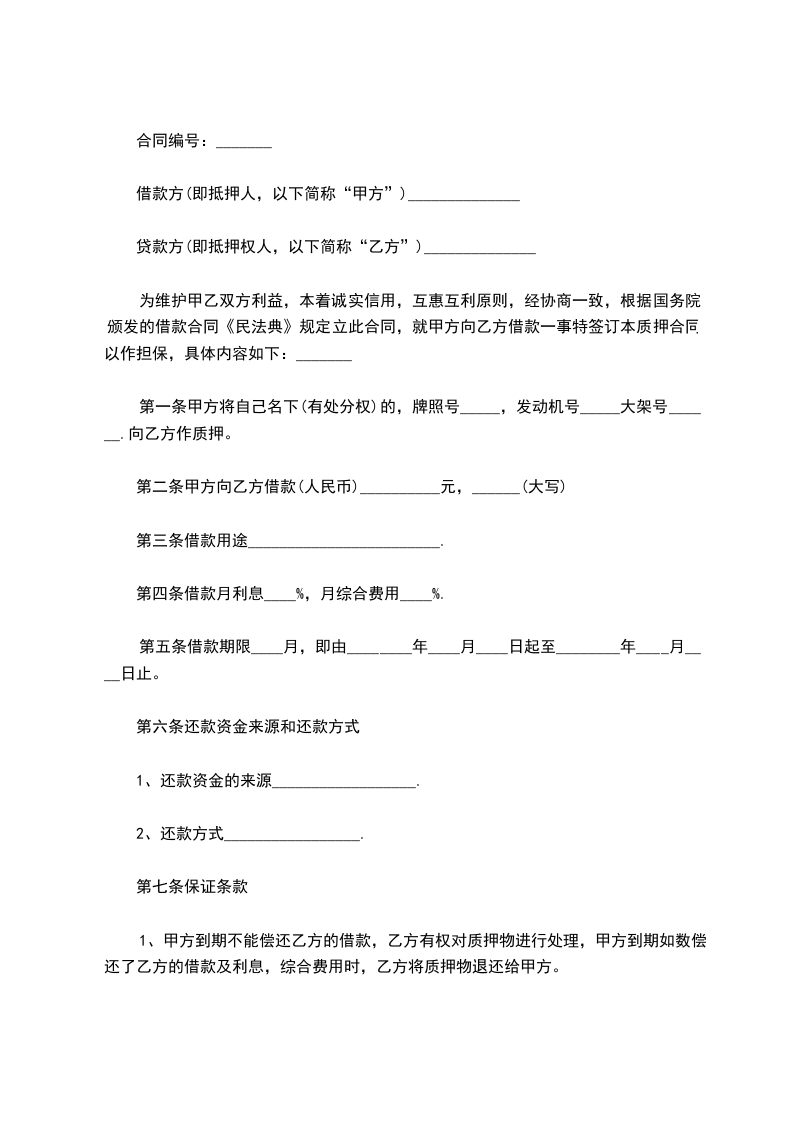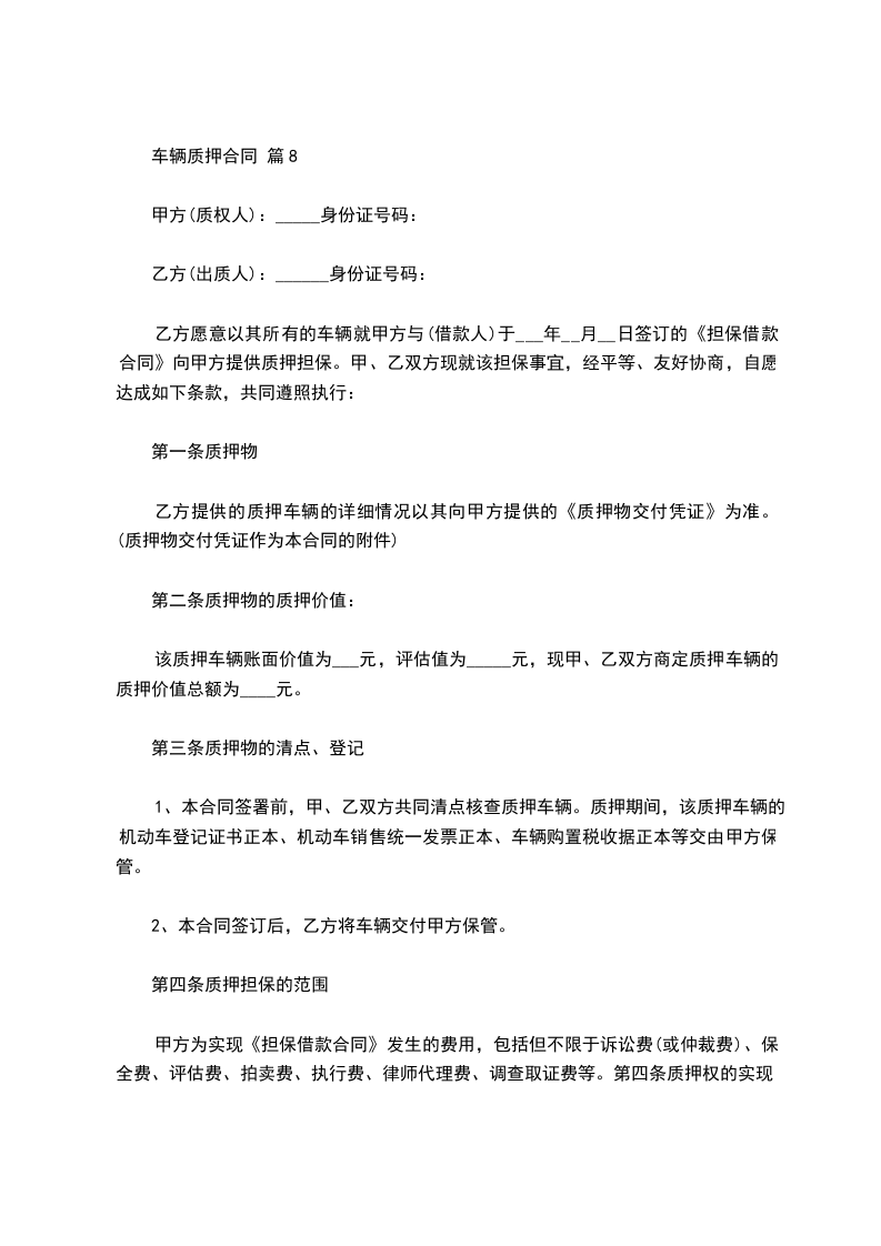 车辆质押合同 篇8