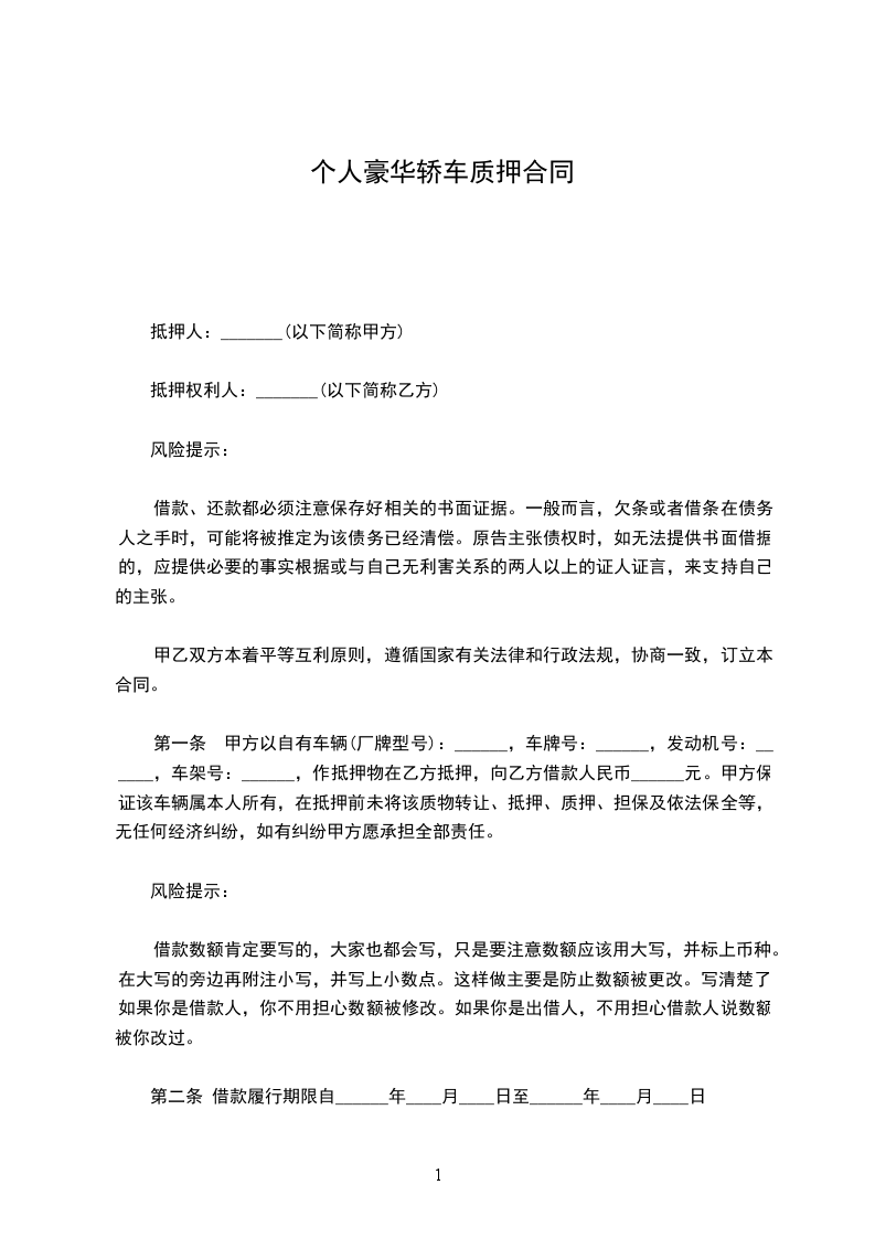 乙方愿意以其所有的车辆就甲方与(借款人)于___年__月__日签订的《担保借款合同》向甲方提供质押担保。甲、乙双方现就该担保事宜,经平等、友好协商,自愿达成如下条款,共同遵照执行: