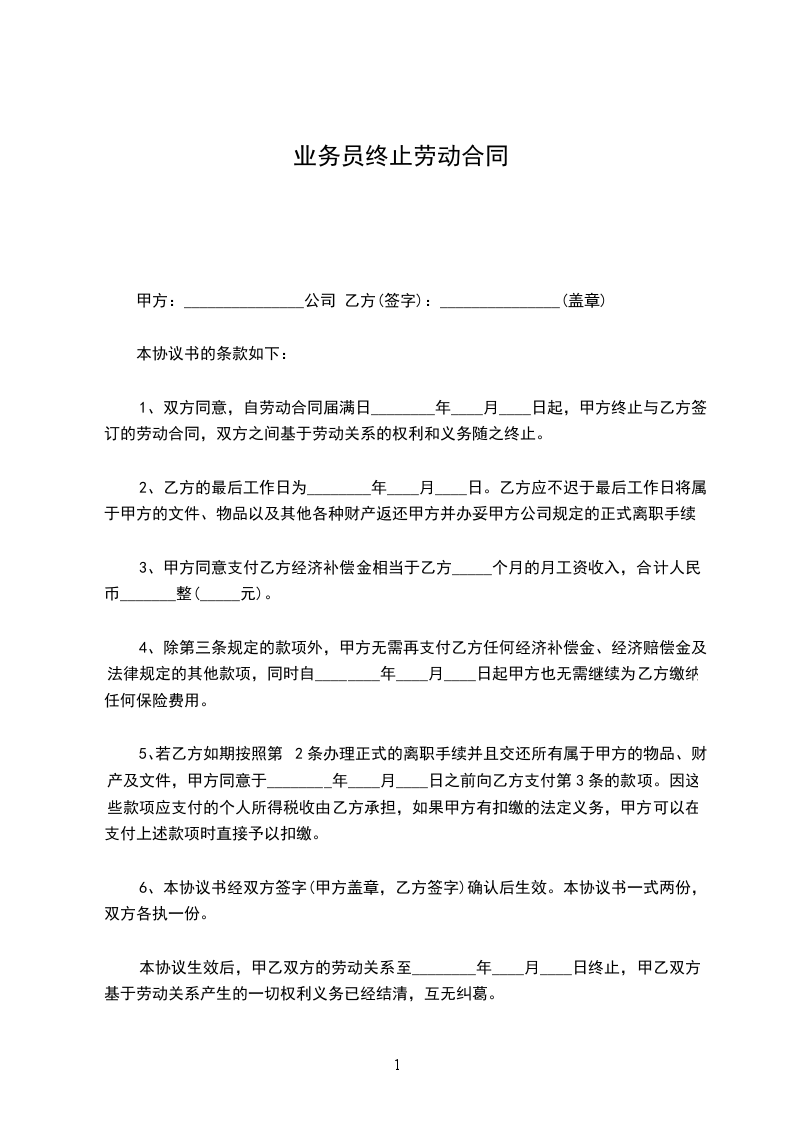 三、《劳动合同书》终止后,乙方应于______年______月______日前将一切业务工作交接手续,包括乙方掌握和使用的公司一切文件、资料、信息、数据、图表、工作记录,包括电子文档及有关物品等向甲方移交清楚;同时,报销公司账目、结清欠款;交接经手过的工作事项。