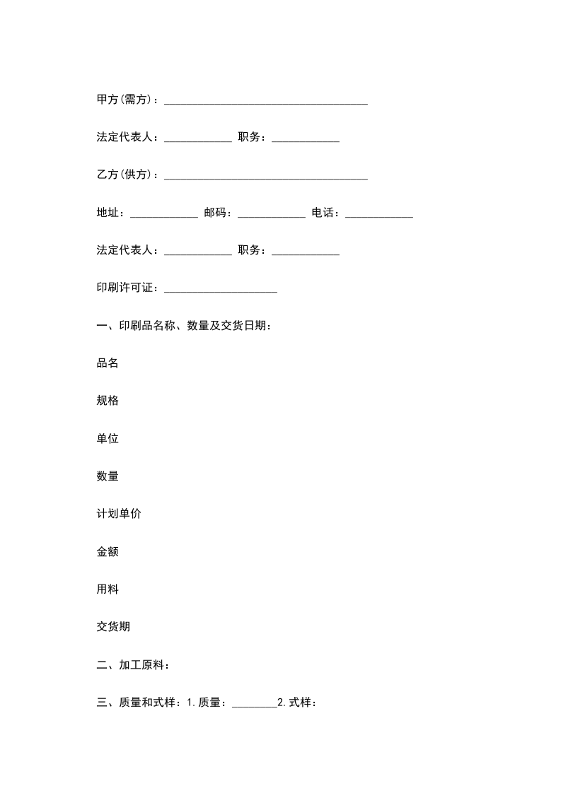 一、印刷品名称、数量及交货日期: