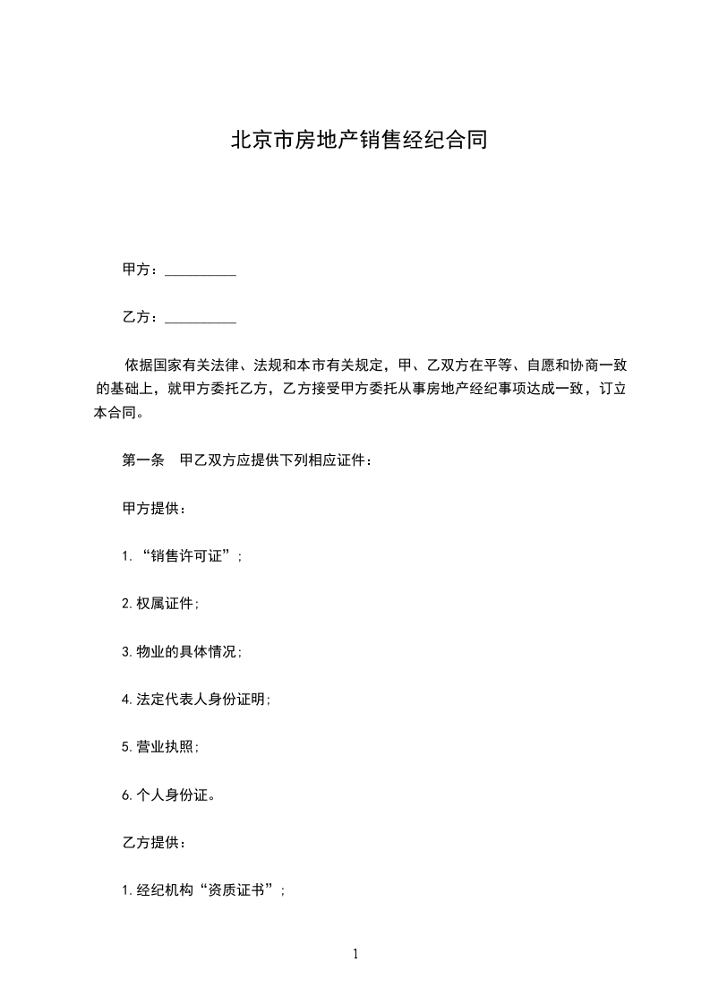第一条 甲乙双方应提供下列相应证件: