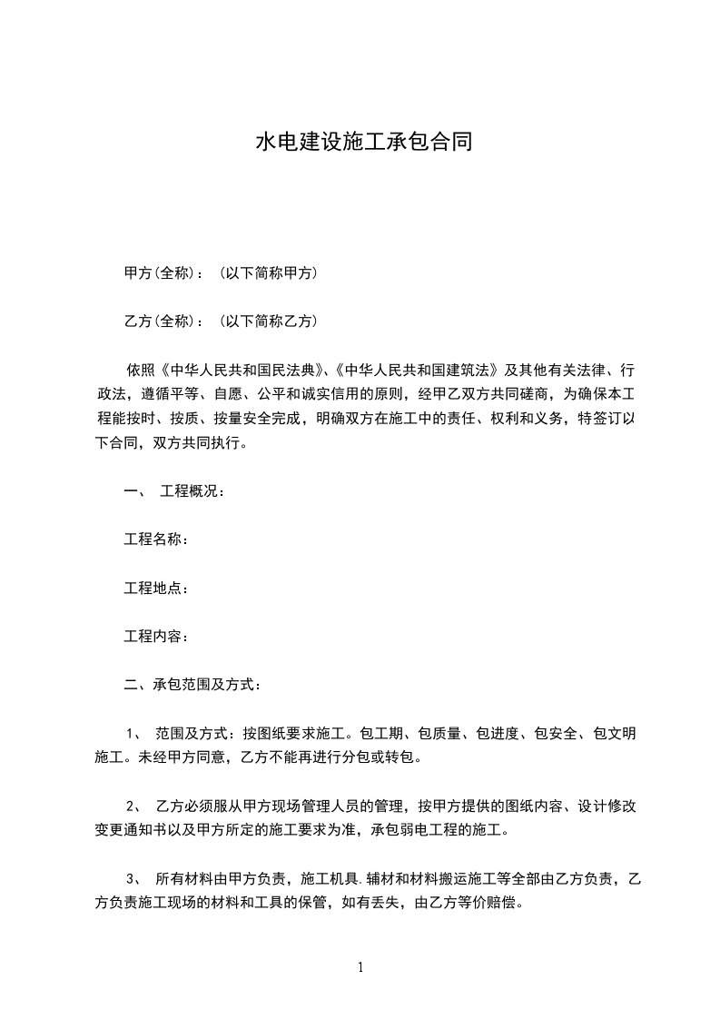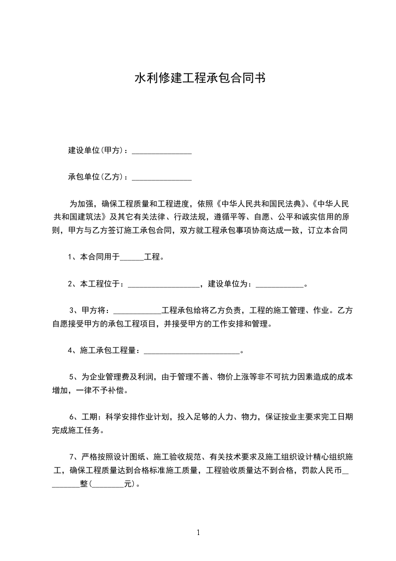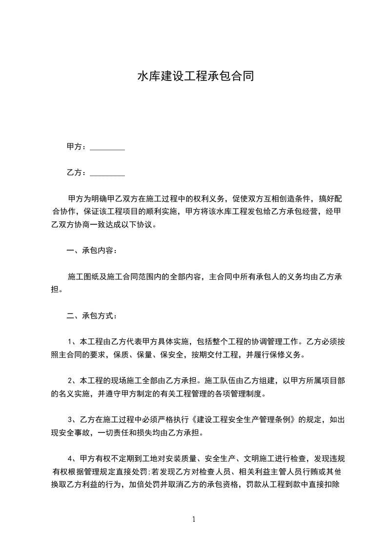 为了达到规范水利工程建设和管理方便工程决算,统一验收标准、统一评比标准(条件)、对小型水利项目实行一个标准发包建设和验收的要求;为了明确本工程甲、乙双方在工程建设中的职责,在执行国家有关规程规范的前提下,经甲、乙双方协商特订立本施工合同。
