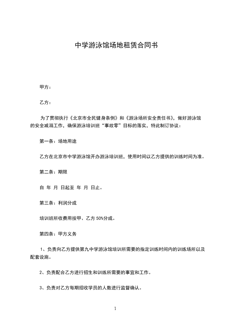 乙方在北京市中学游泳馆开办游泳培训班,使用时间以乙方提供的训练时间为准。