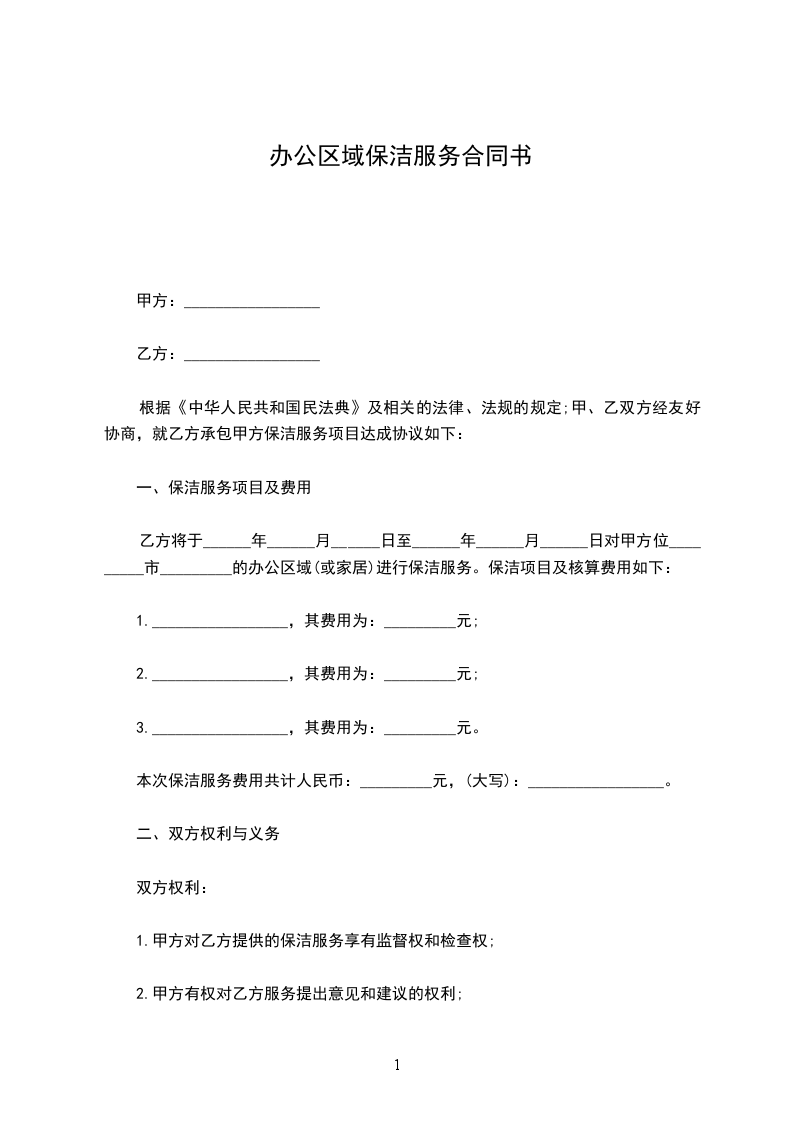 乙方将于______年______月______日至______年______月______日对甲方位_________市_________的办公区域(或家居)进行保洁服务。保洁项目及核算费用如下: