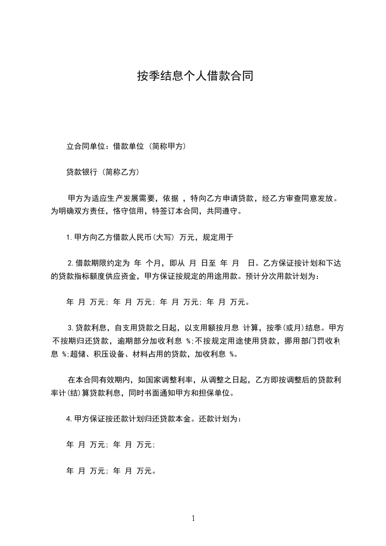 立合同单位:借款单位 (简称甲方)