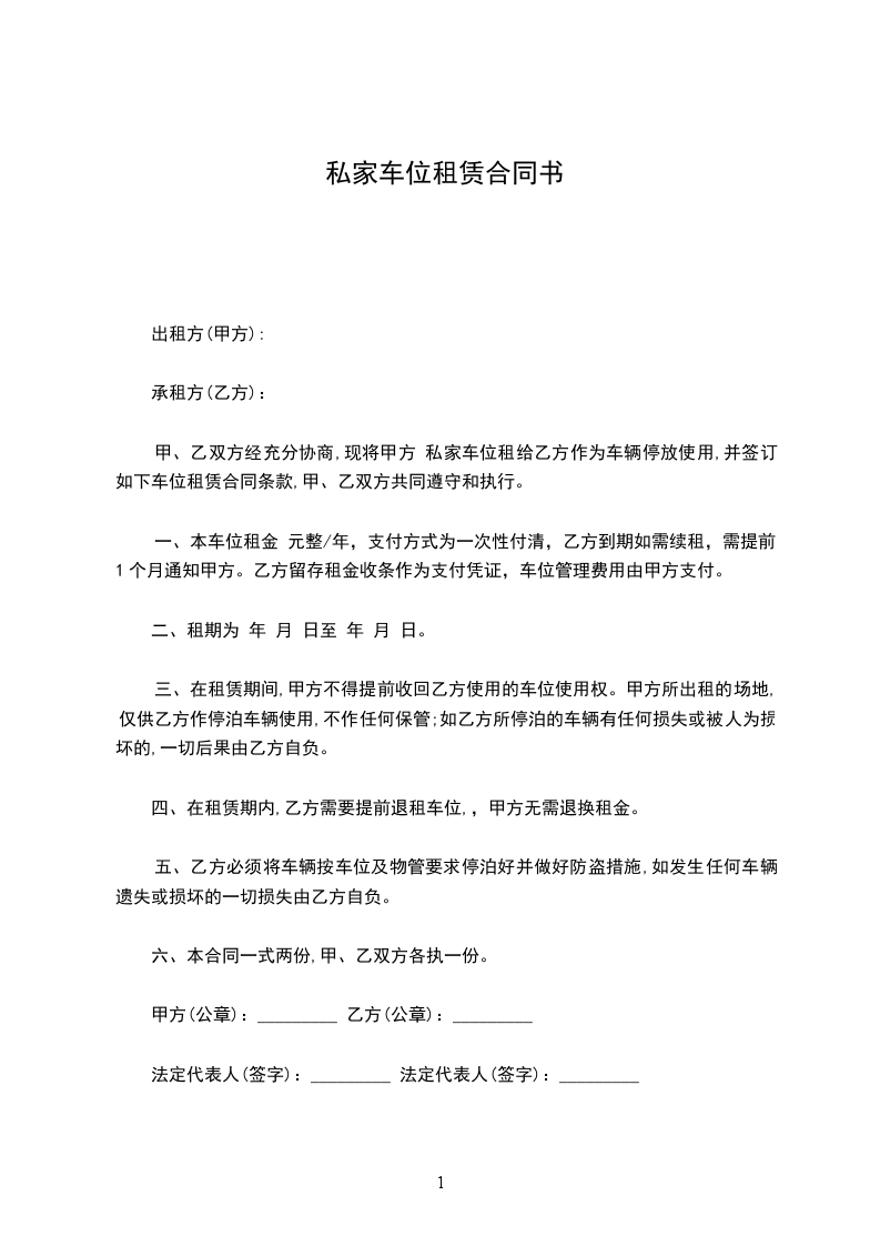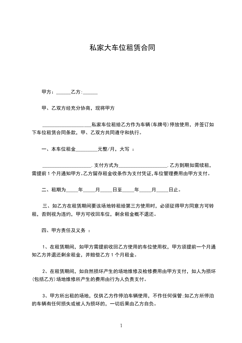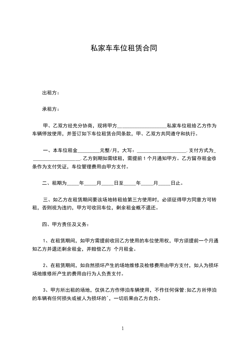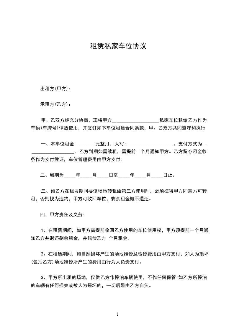 甲、乙双方经充分协商,现将甲方___________________________________私家车位租给乙方作为车辆