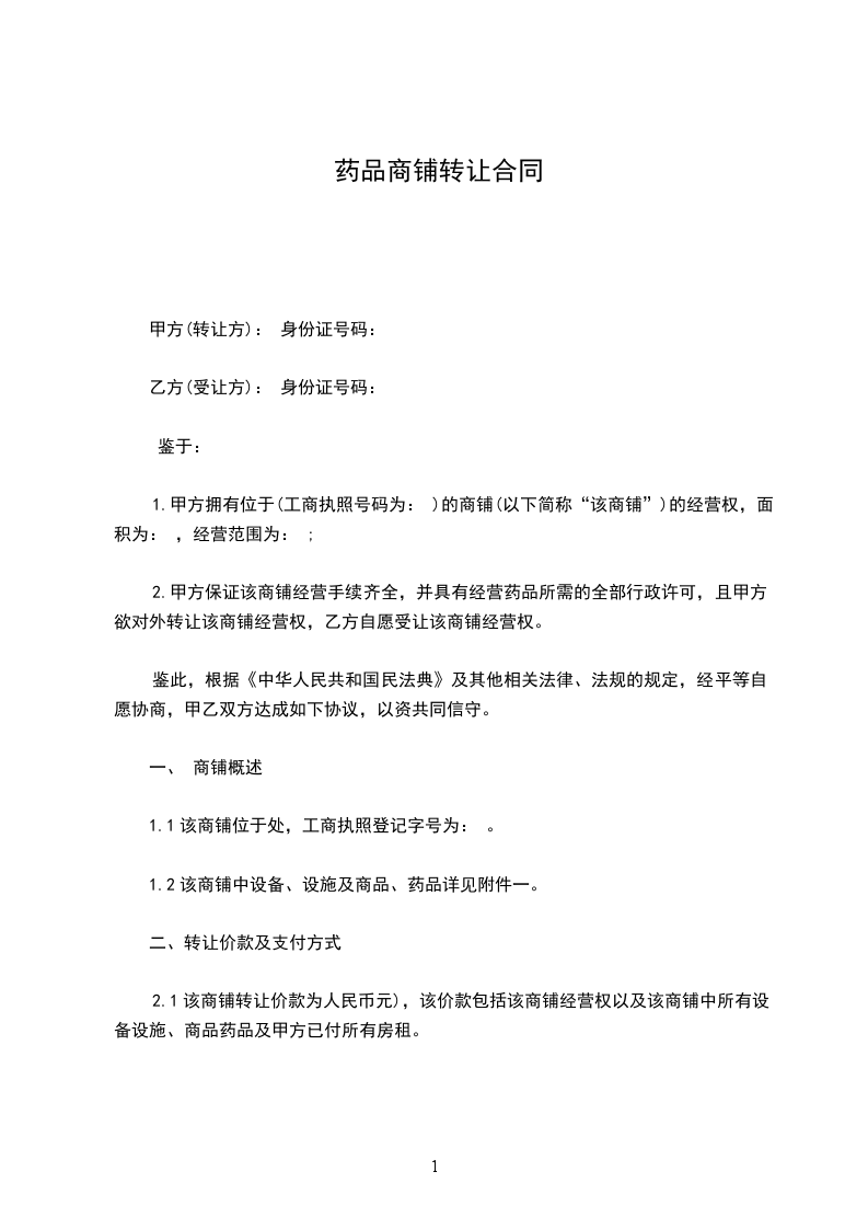 2.甲方保证该商铺经营手续齐全,并具有经营药品所需的全部行政许可,且甲方欲对外转让该商铺经营权,乙方自愿受让该商铺经营权。