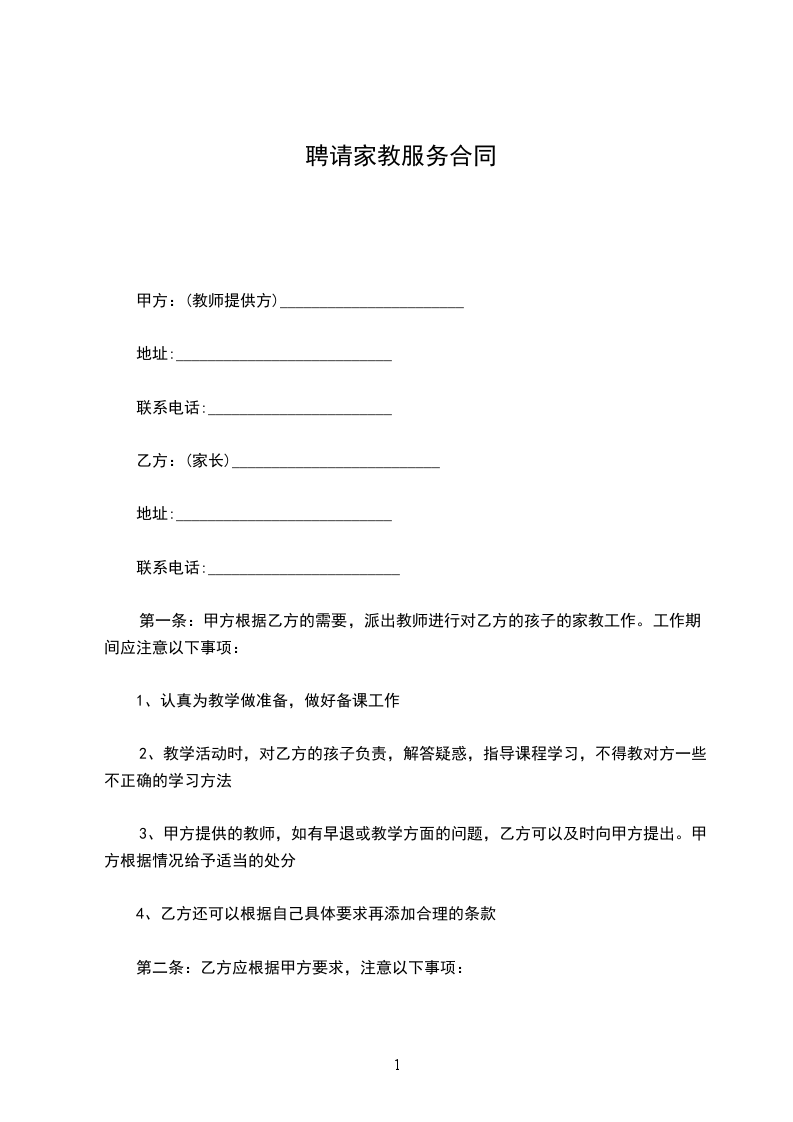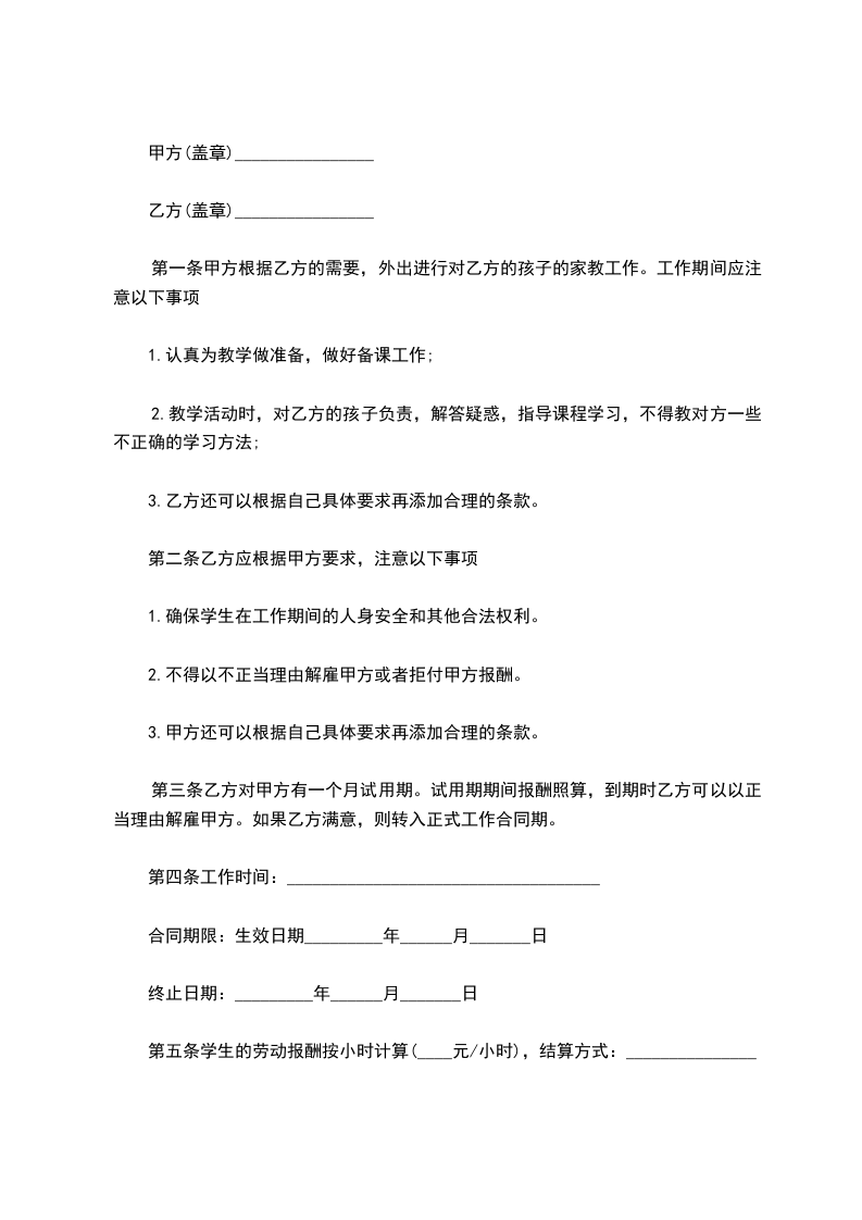 一、甲方保证按商定的时间、地点及课程为乙方安排教员授课。教员首次上门授课持甲方介绍信。