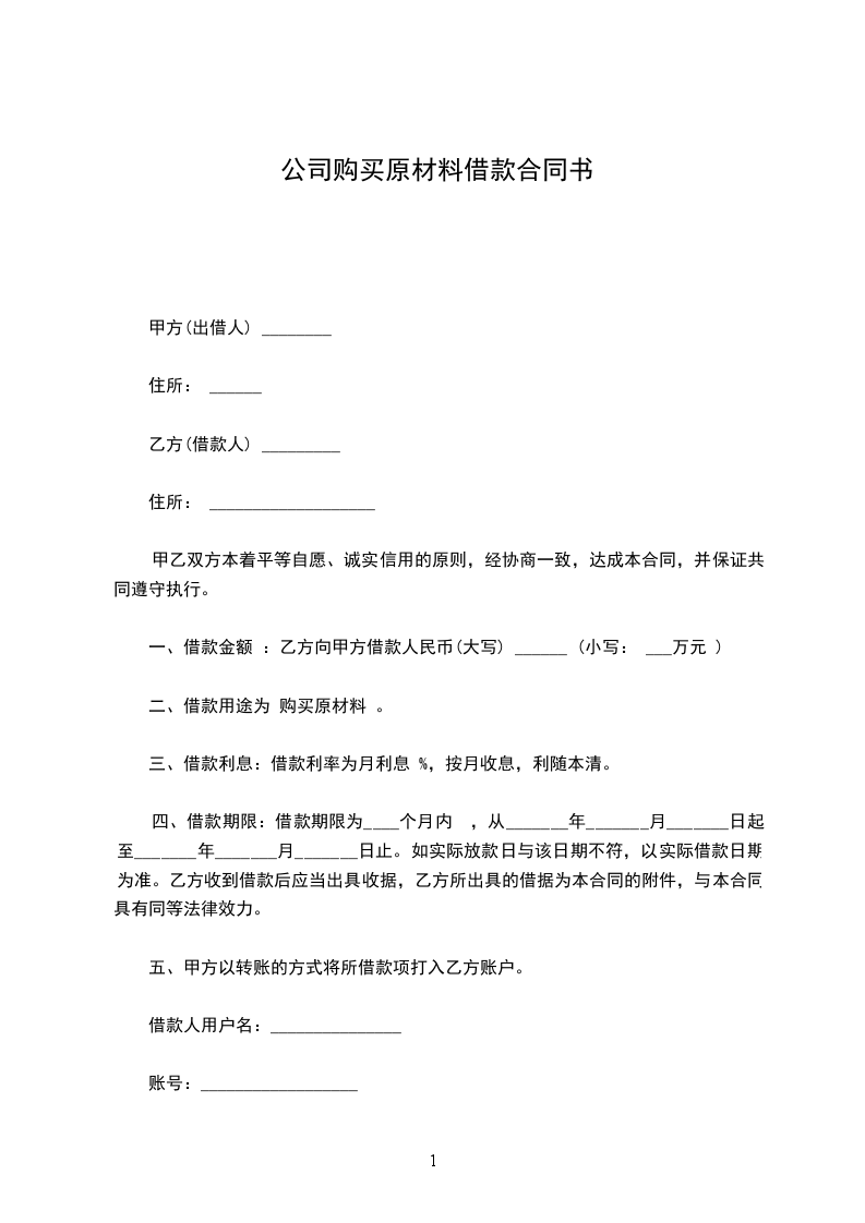 一、借款金额 :乙方向甲方借款人民币(大写) ______ (小写: ___万元 )