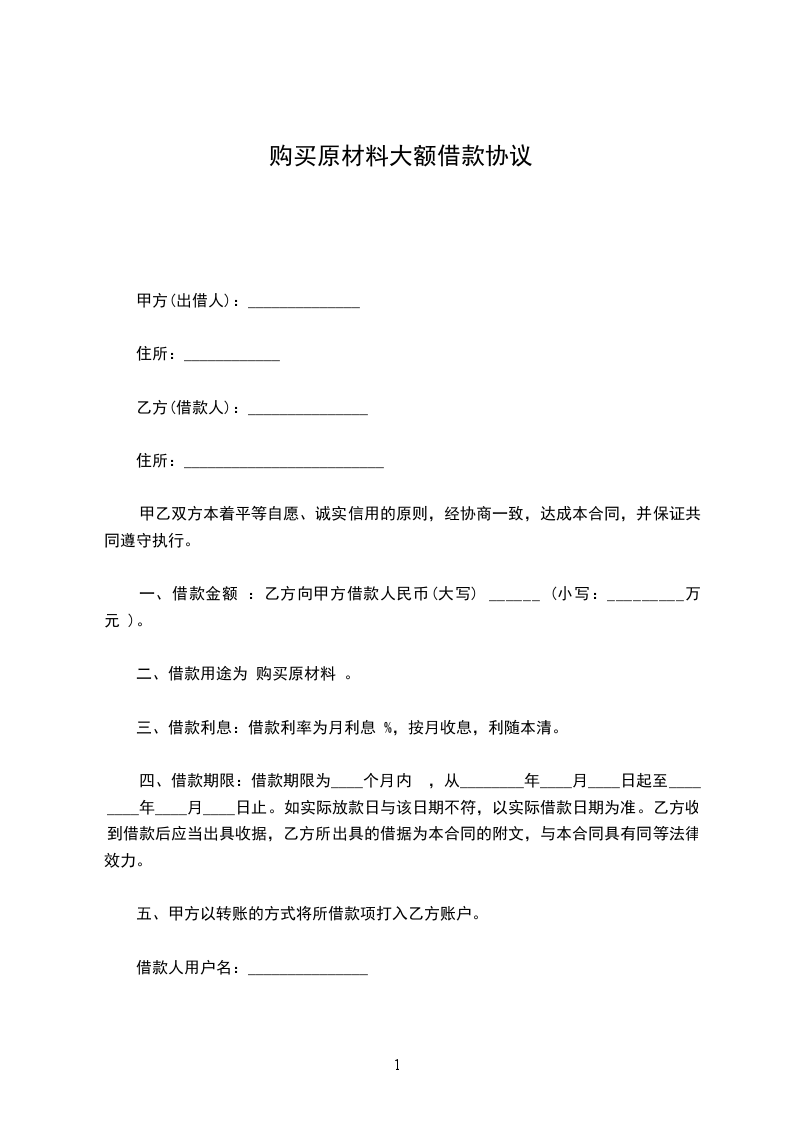 借款人用户名:_______________