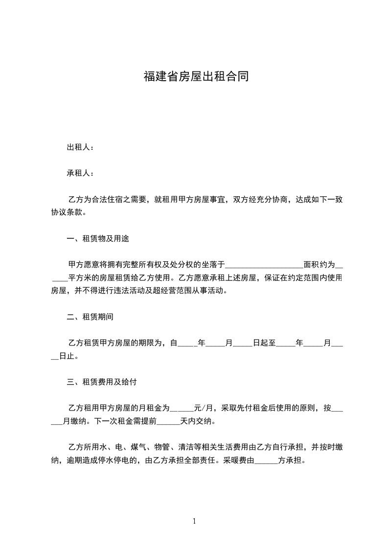 1、本合同租赁期为 年 月 日至 年 月 日止。