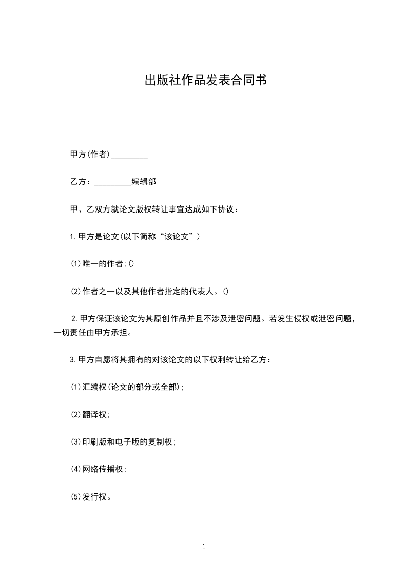 甲乙双方就上述作品的出版、发行达成如下协议: