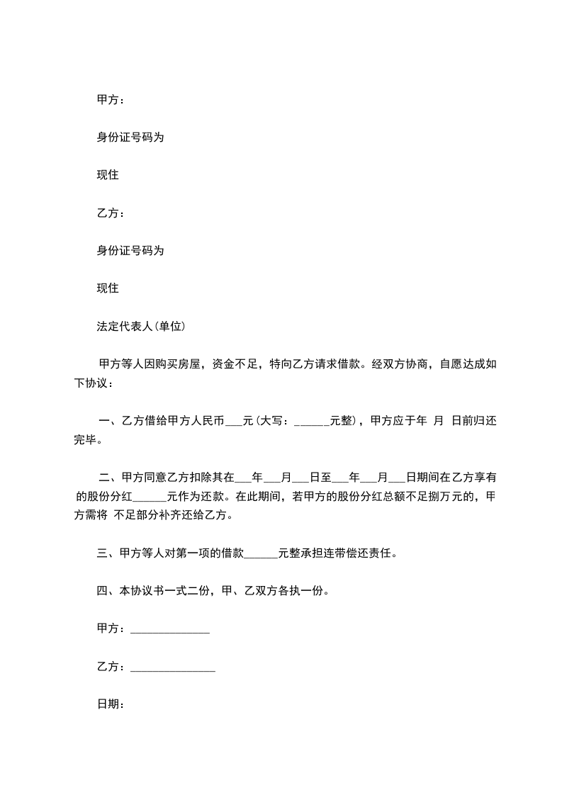 借款金额:甲方同意借款给乙方人民币 万元整。(小写: 元)